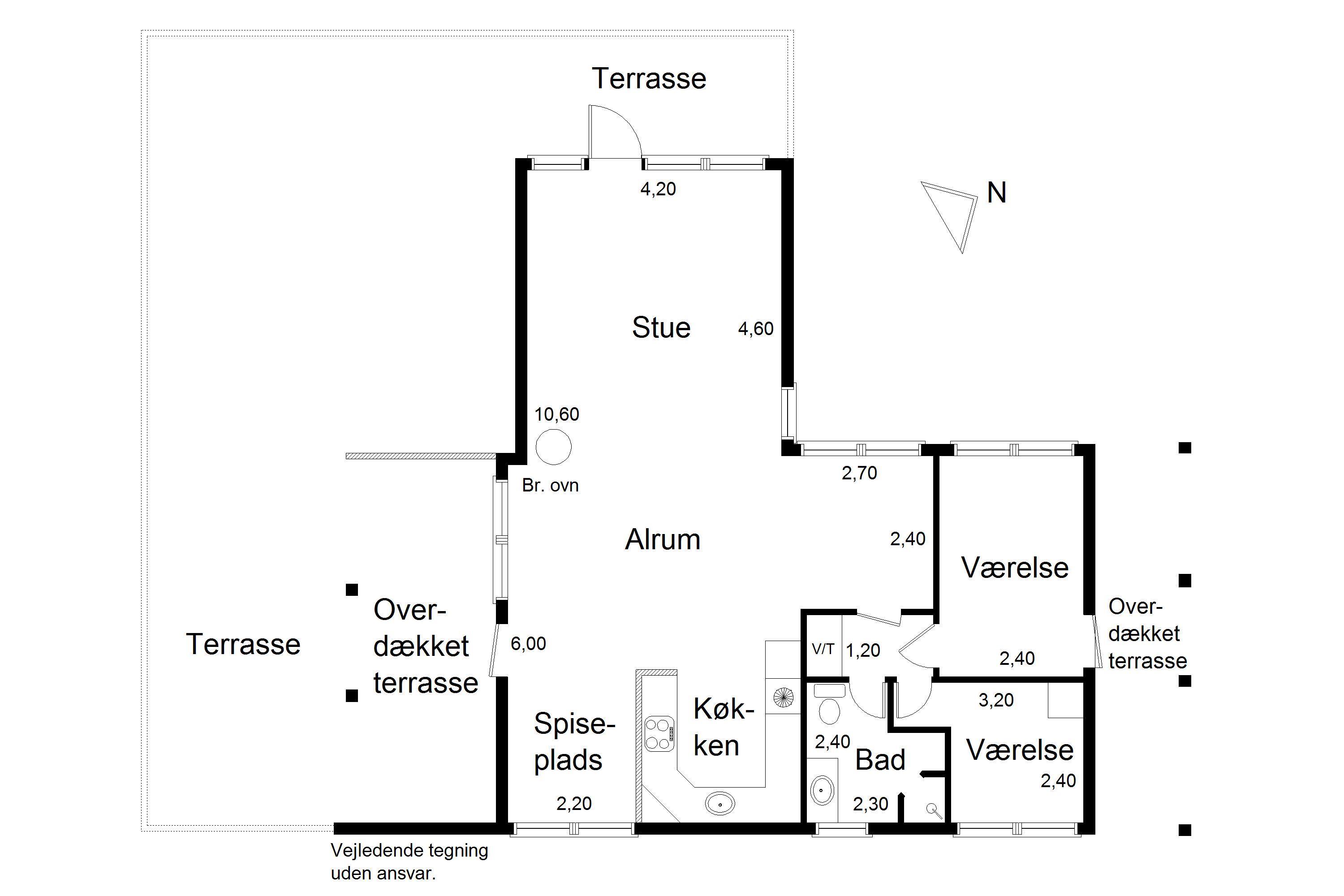 Ferieboligen er beliggende på en 1100 m² stor naturgrund. Der er 7700 m til havet. Der er 700 m til fjorden. Nærmeste forretning er beliggende i en afstand af 1500 m. Desuden er der overdækket terrasse. Gasgrill står til rådighed. Parkering ved ferieboligen.