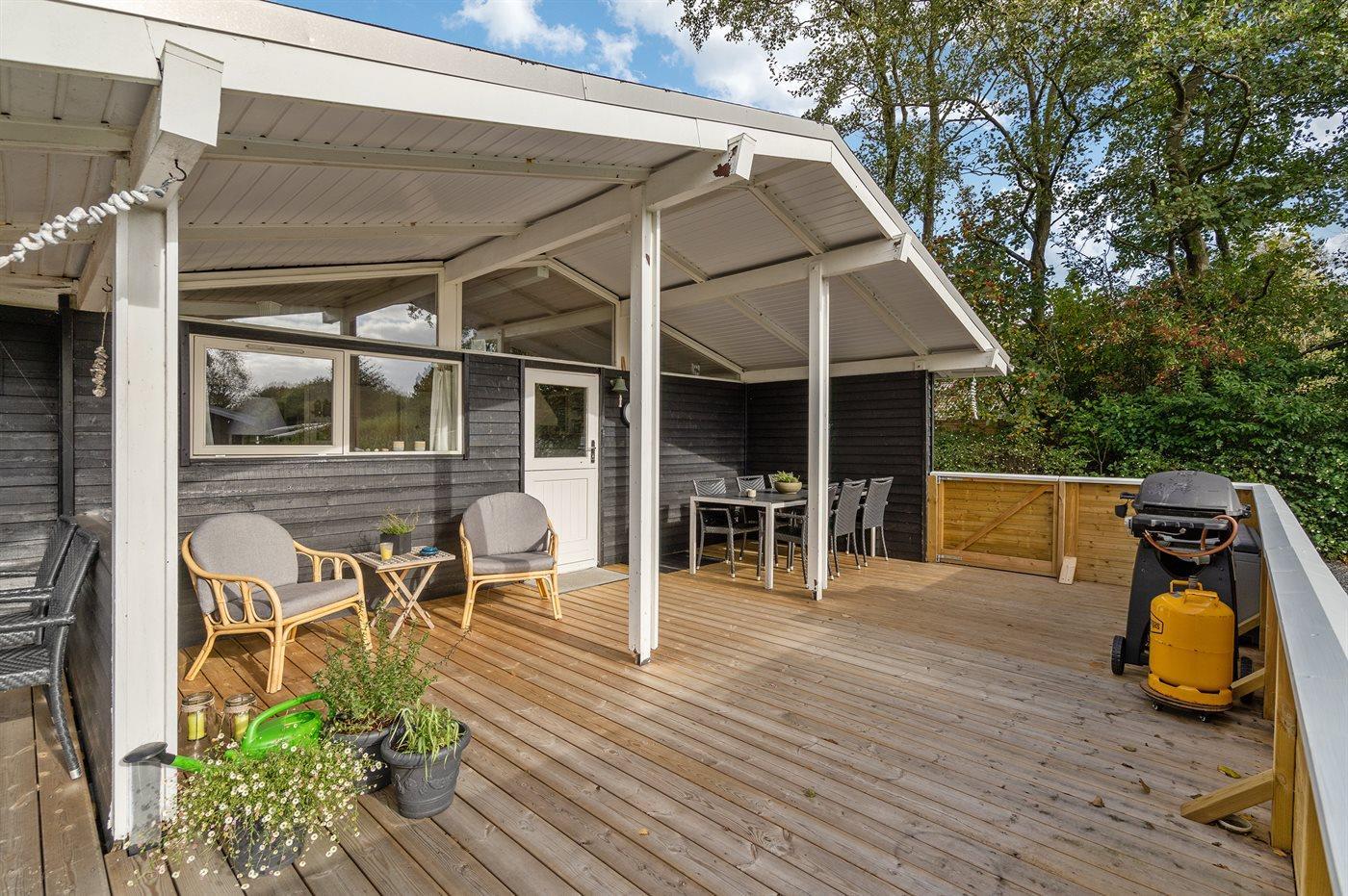 Huset er skønt indrettet med plads til 6 personer. Terrassen er indhegnet og delvist overdækket, og huset er placeret på en dejlig naturgrund omkranset af buske og træer. Der ligger en stor legeplads i nærheden.