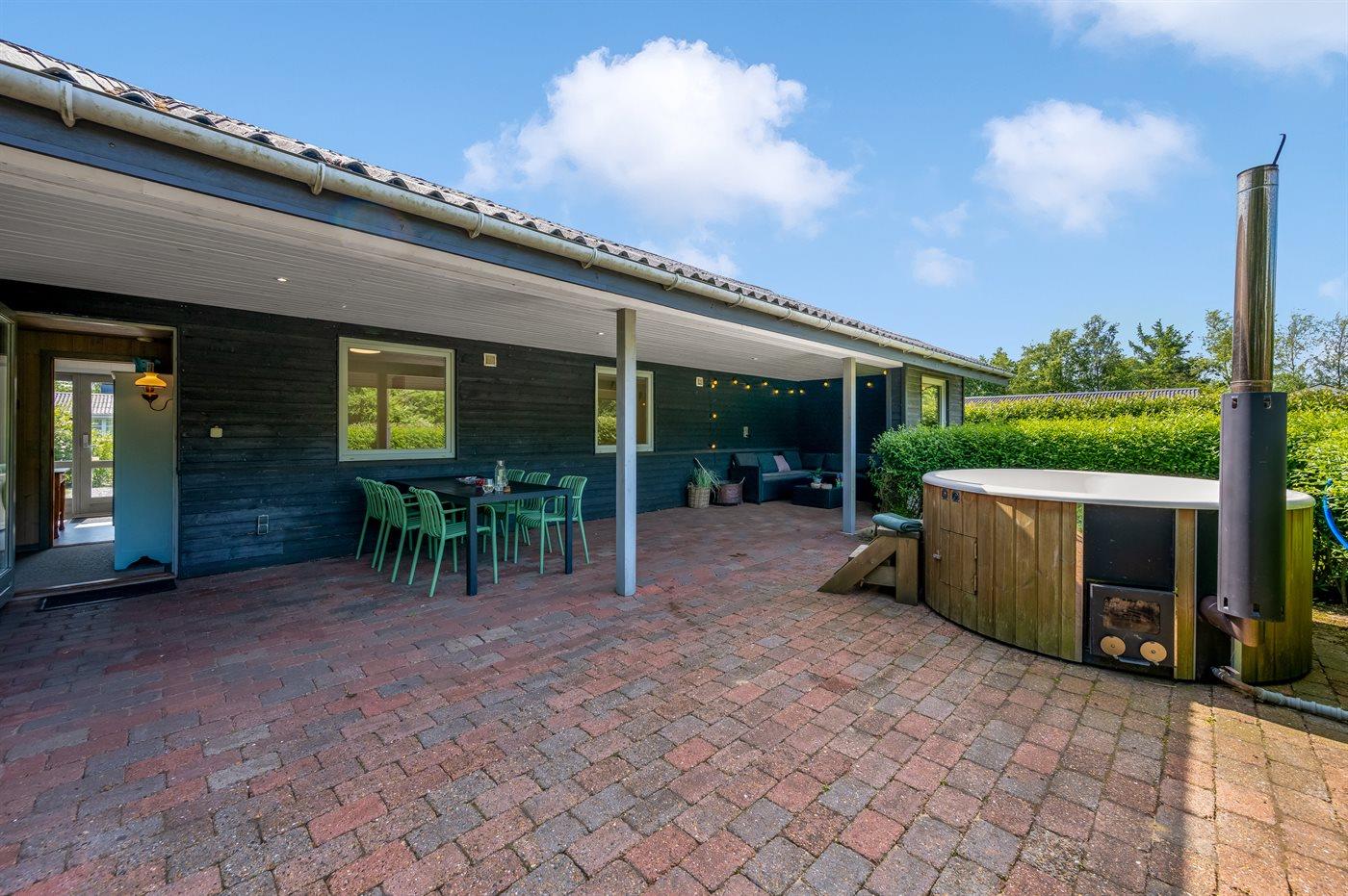 På den store og delvist overdækkede terrasse kan du slappe af i de lækre loungemøbler, og vil du for alvor skrue op for luksussen, skal du tænde op i vildmarksbadet. Dækket af det varme vand kan du slappe fuldstændig af, og om aftenen er der frit udsyn til den smukke, klare stjernehimmel.