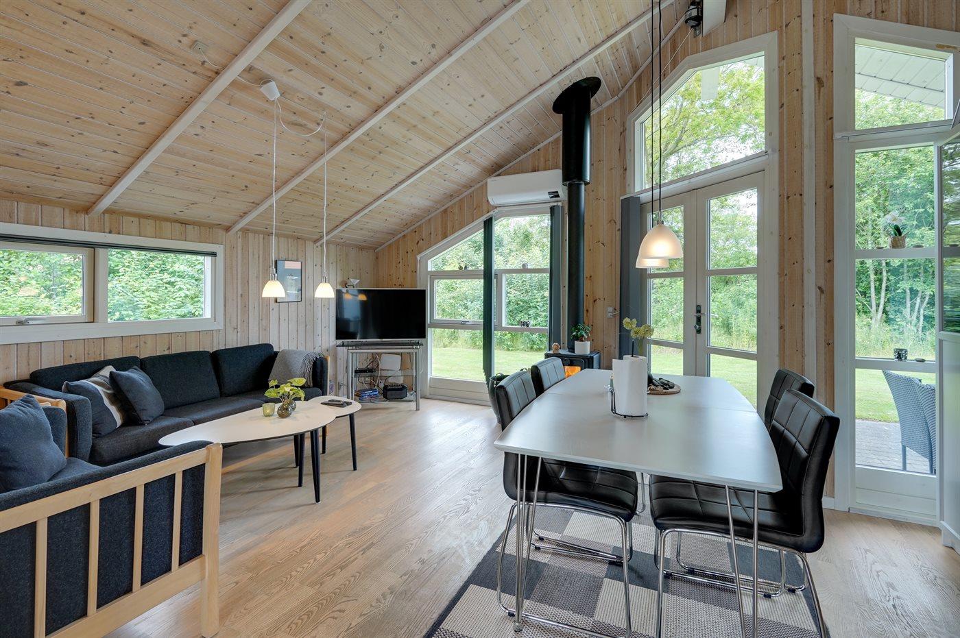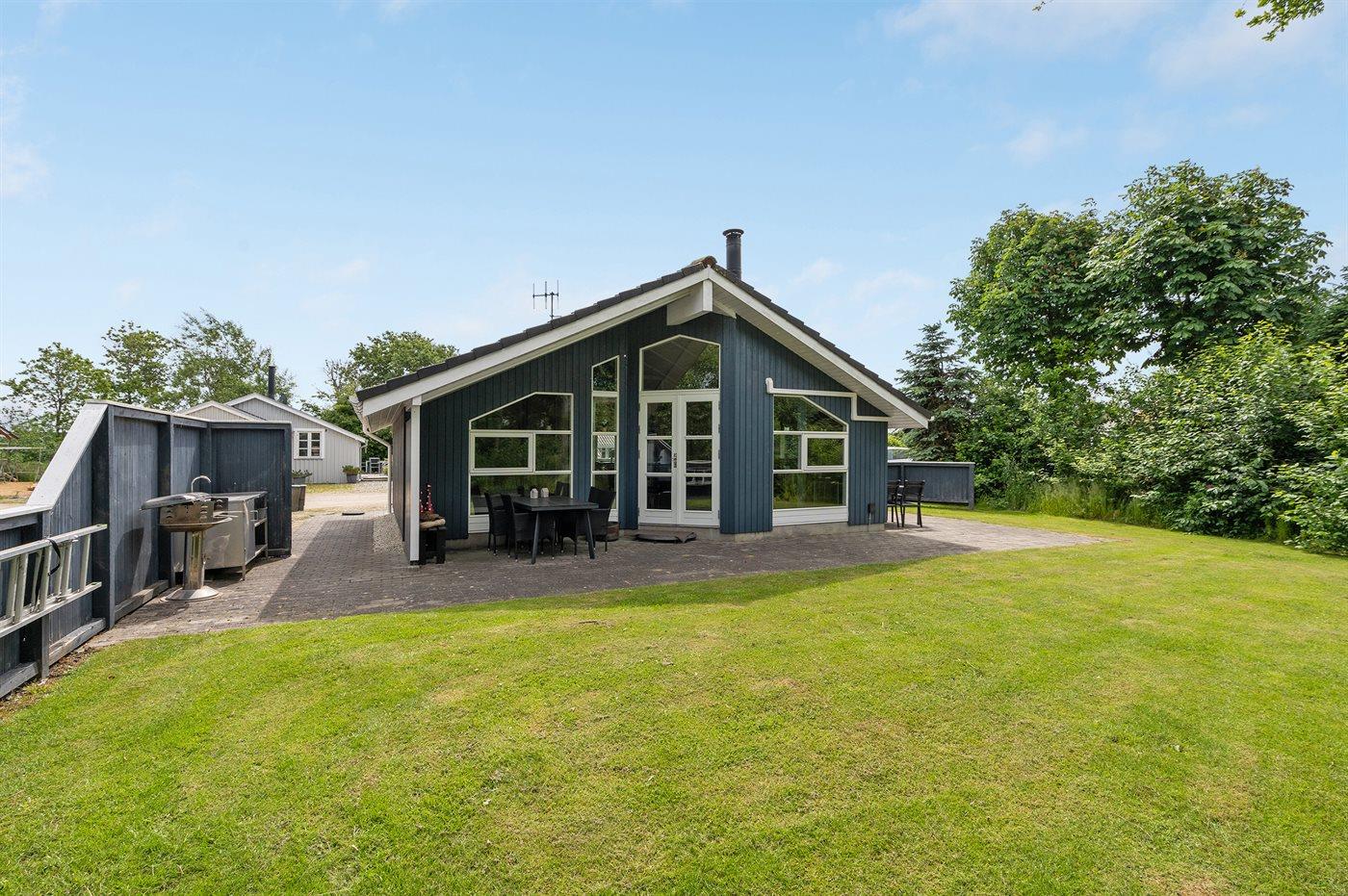 Ferieboligen er beliggende på en 500 m² stor naturgrund. Der er 6400 m til havet. Der er 1200 m til fjorden. Nærmeste forretning er beliggende i en afstand af 2000 m. Til ferieboligen hører 30 m² terrasseareal. Desuden er der 6 m² overdækket terrasse. Der er redskabsrum. Parkering ved ferieboligen.