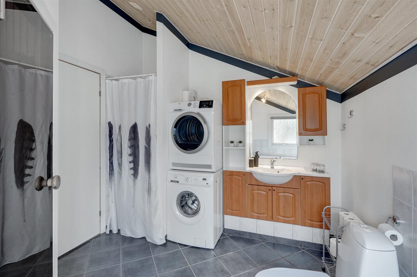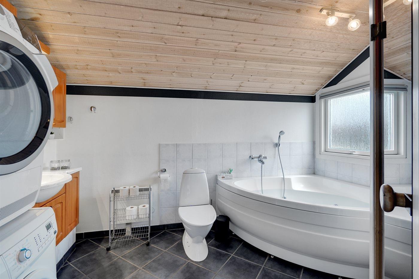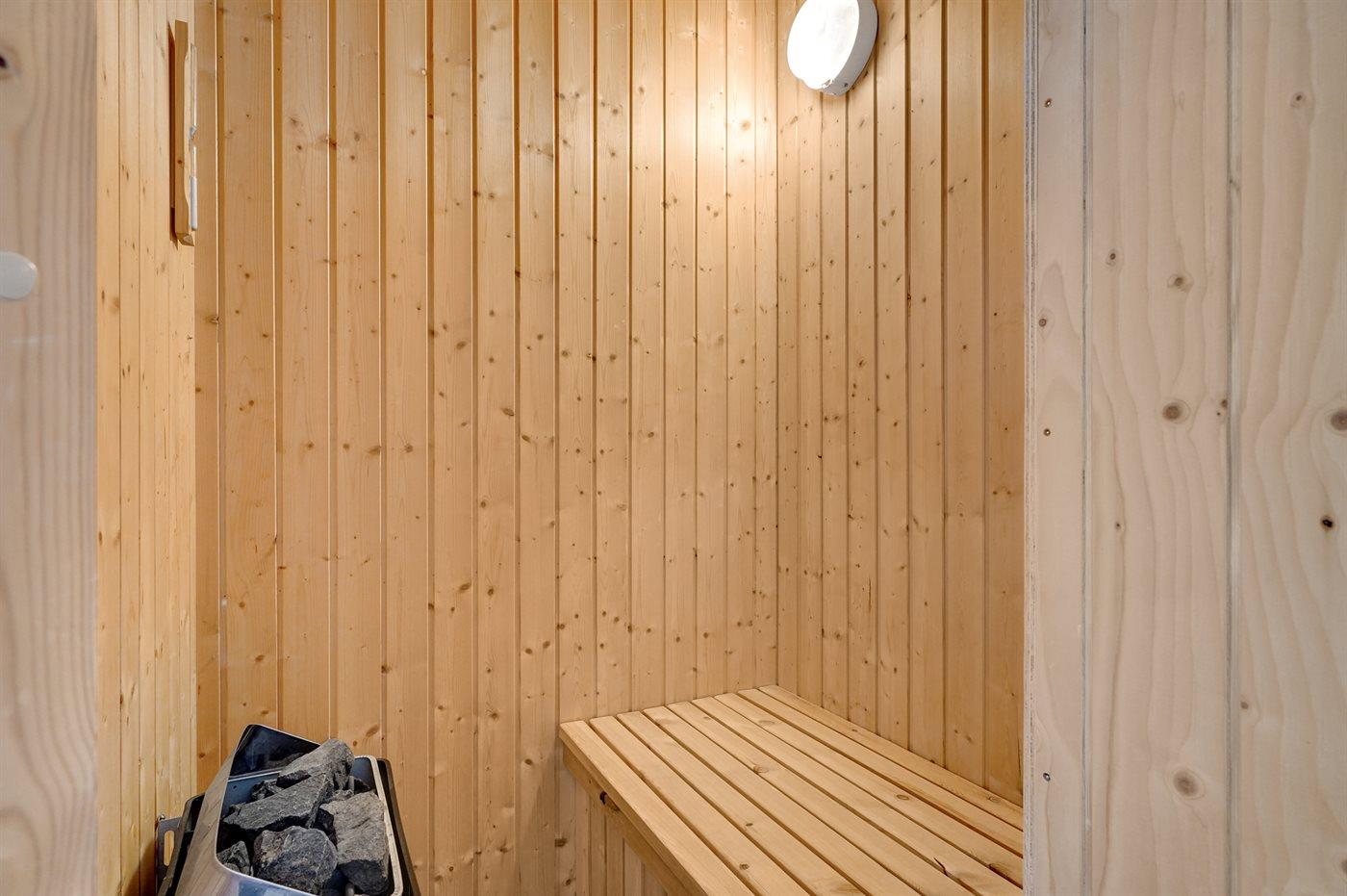 Der er 1 badeværelse med bruseniche og 1 toilet.. Der er gulvvarme på 1 badeværelse. I saunaen er der mulighed for afslapning.