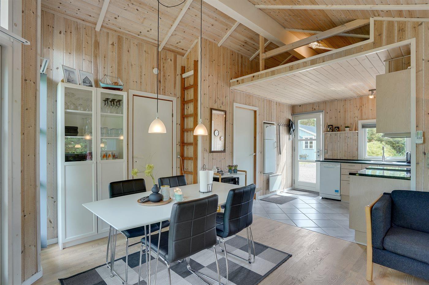 Lyst indrettet sommerhus beliggende på en lille naturgrund på en lukket vej. Huset ligger i et område, hvor der er gode muligheder for at nyde naturen til fods eller på cykel. Gode fiske- og surfmuligheder på Ringkøbing Fjord. Besøg også den lille lystbådehavn i Bork, hvor der hygge og atmosfære. Fra huset er der kun få min. gang til fælles legeplads med diverse legeredskaber.
