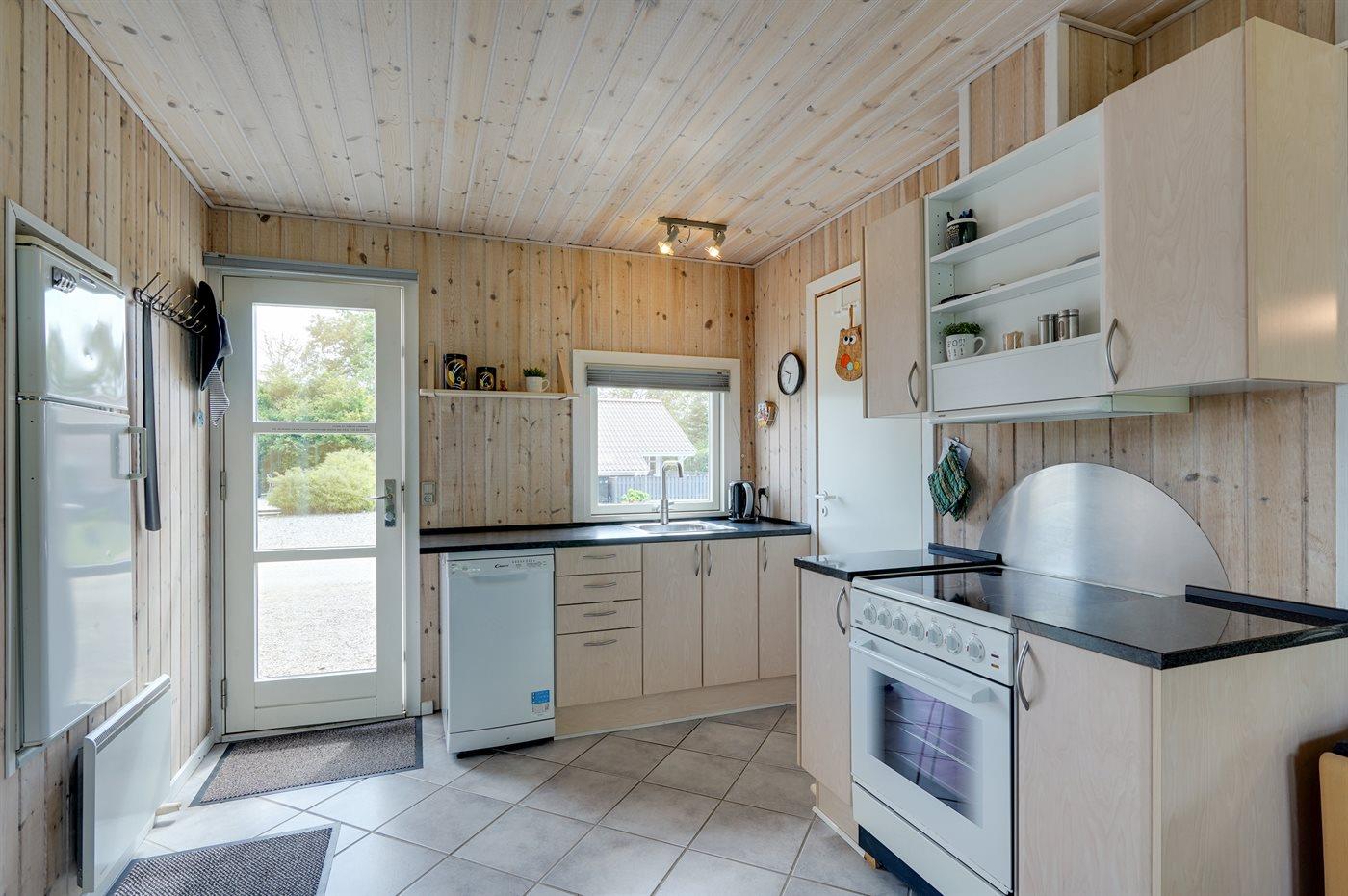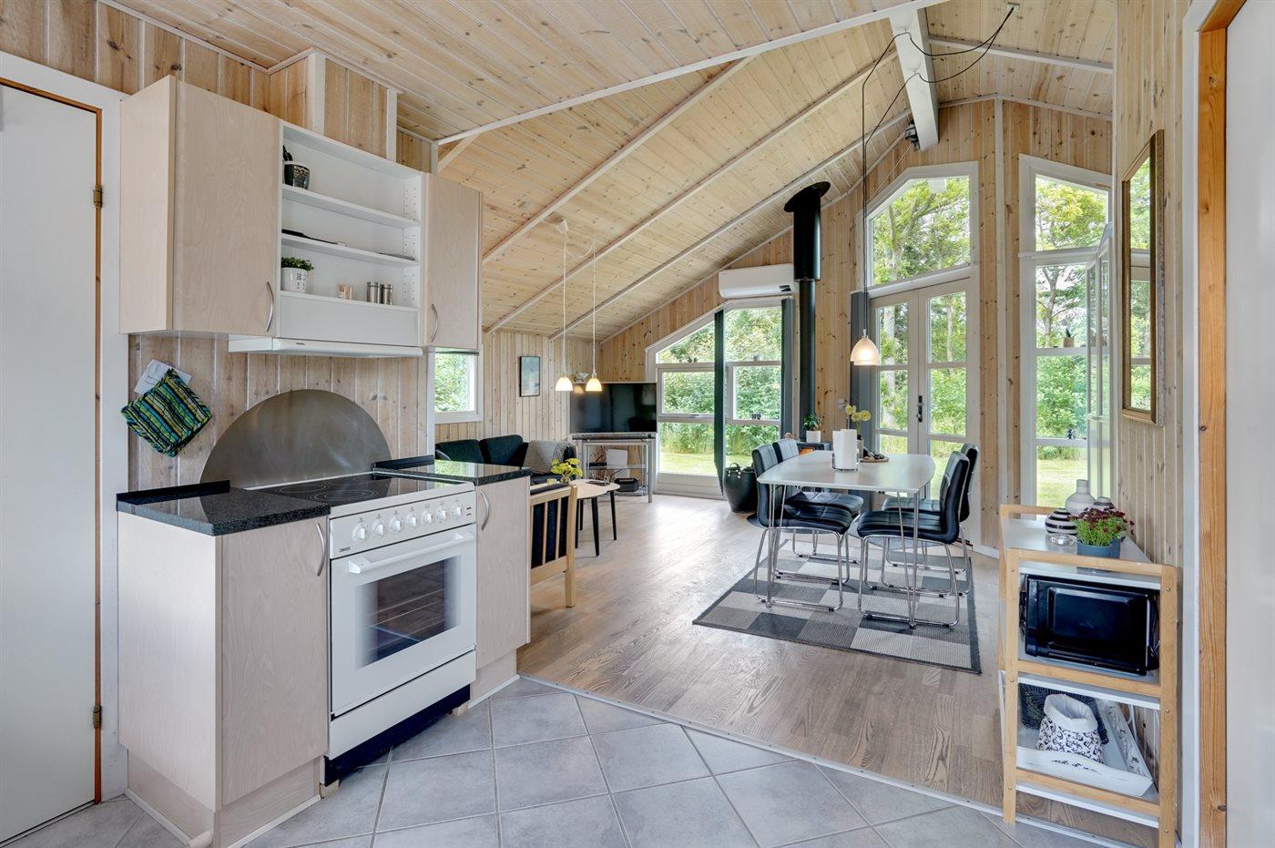 Køkkenet er udstyret med 1 køleskab. Der er 4 keramiske kogeplader, varmluftovn, mikrobølgeovn samt opvaskemaskine.