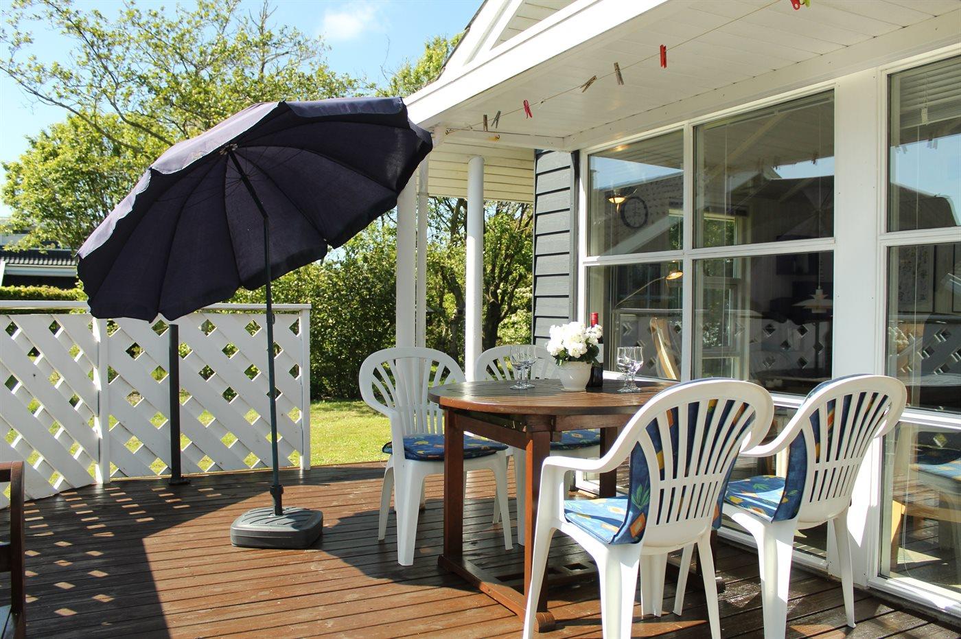 Hyggeligt sommerhus med brændeovn og terrasse tæt på Bork Havn og Ringkøbing Fjord.