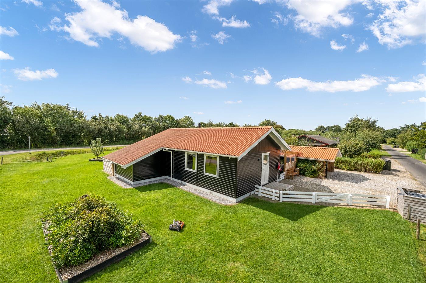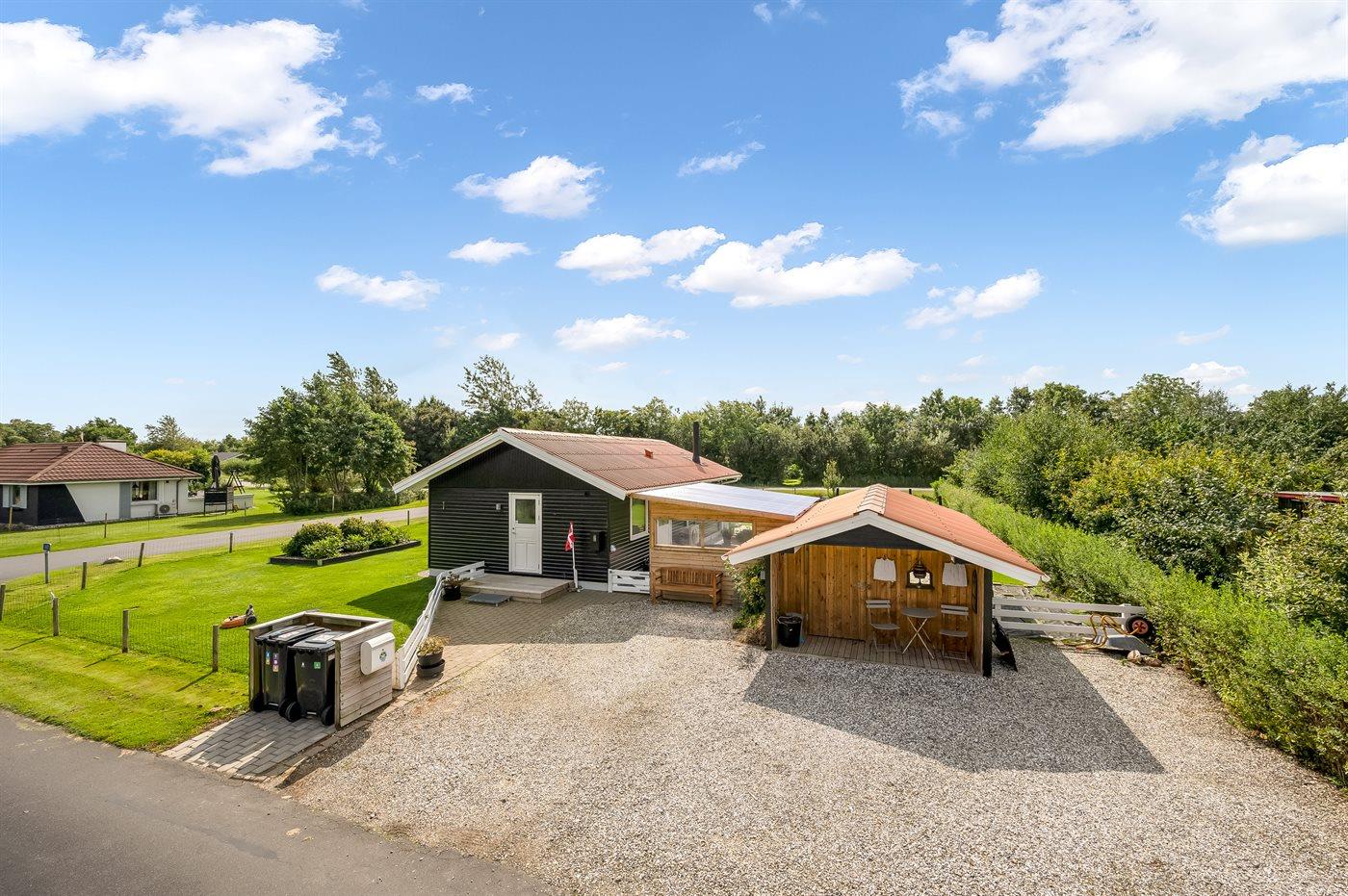 Ferieboligen er beliggende på en 987 m² stor naturgrund. Grunden er indhegnet. Der er 7200 m til havet. Der er 600 m til fjorden. Der er en badebro i nærheden. Nærmeste forretning er beliggende i en afstand af 800 m. Til ferieboligen hører 26 m² terrasseareal. Desuden er der 7 m² overdækket terrasse. Der er redskabsrum. Der ligger en legeplads i en afstand af 400 m. Bålsted. Grill til rådighed. Der er installeret stik til opladning af elbil (3-faset, 400 V). Kabel skal medbringes. Parkering ved ferieboligen.