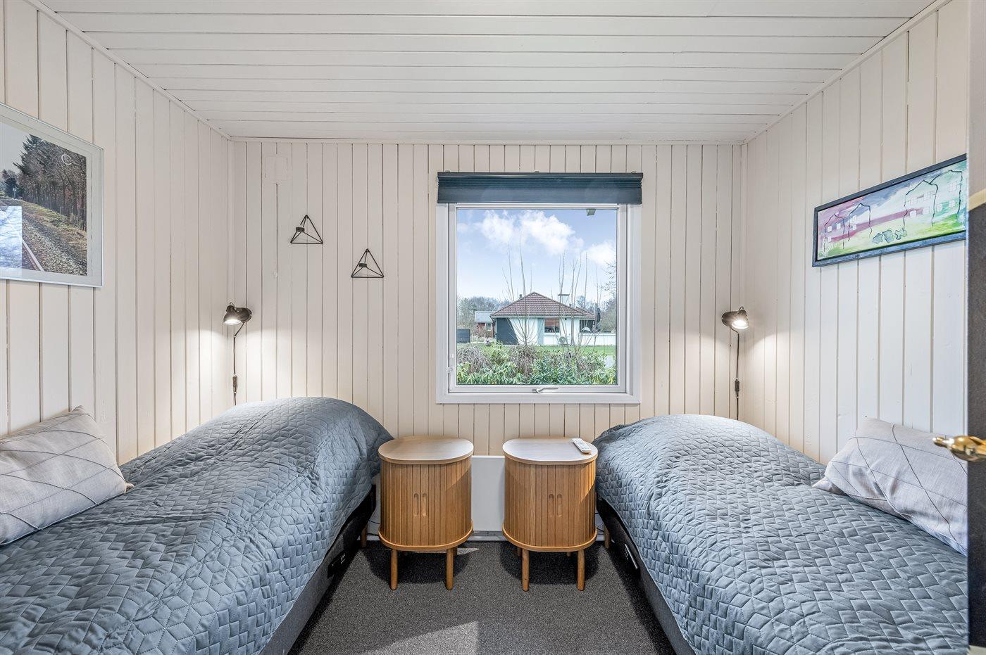 Der er i alt 2 soveværelser. Sovepladserne fordeler sig på: 2 sovepladser i dobbeltseng.2 sovepladser i elevationssenge.