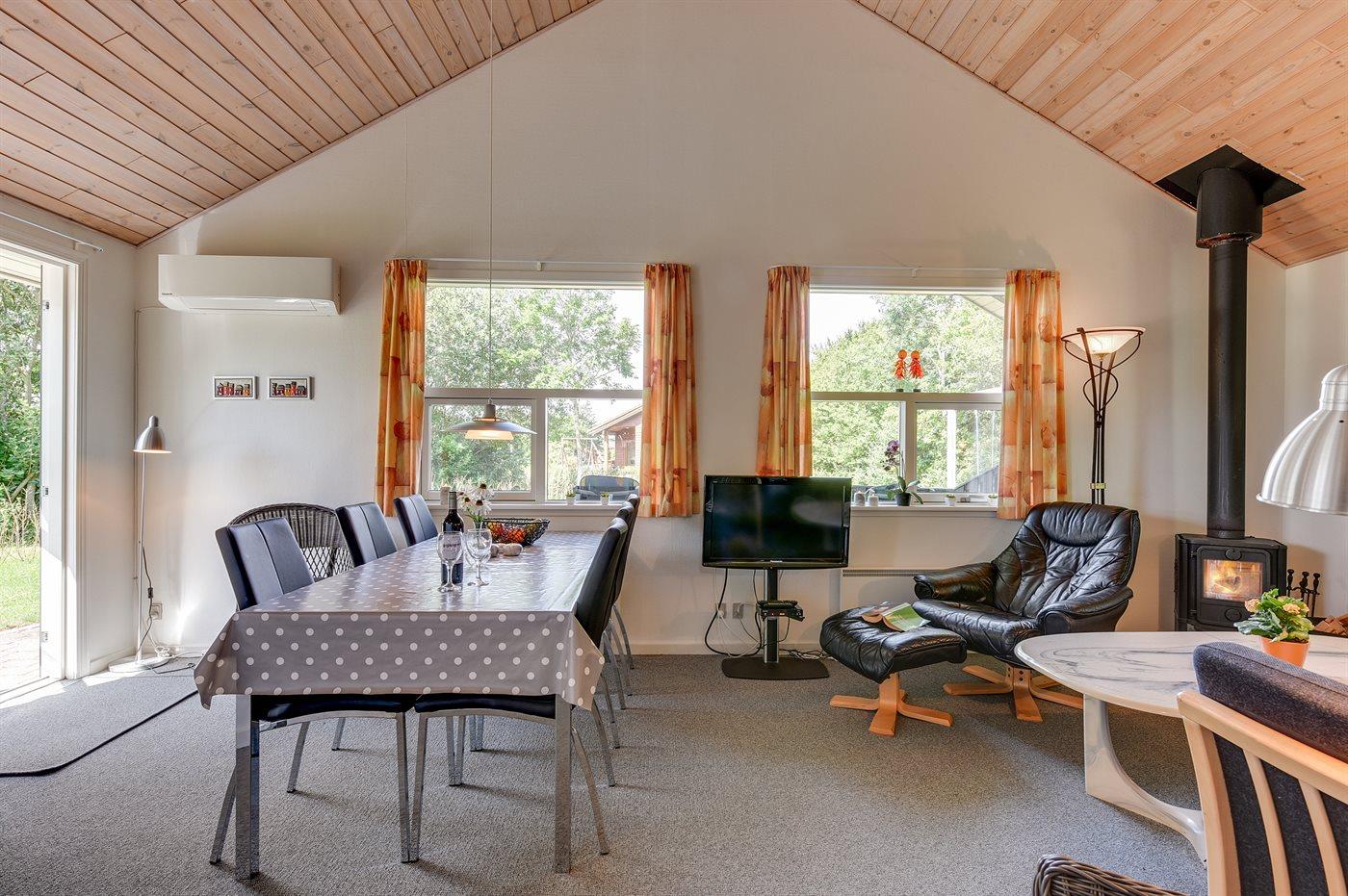 Sommerhuset egner sig til 6 personer samt 1 barn op til 3 år. 2 af sovepladserne er kun egnet til større børn (4-11 år). Ferieboligen er på 79 m² og er bygget i 1999. Det er ikke tilladt at medbringe husdyr. Ferieboligen er udstyret med energibesparende varmepumpe. Ferieboligen har vaskemaskine. Tørretumbler. Frysekapacitet på 30 liter. Der er desuden brændeovn. Til de små er der 1 stk. barnestol.