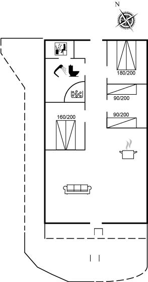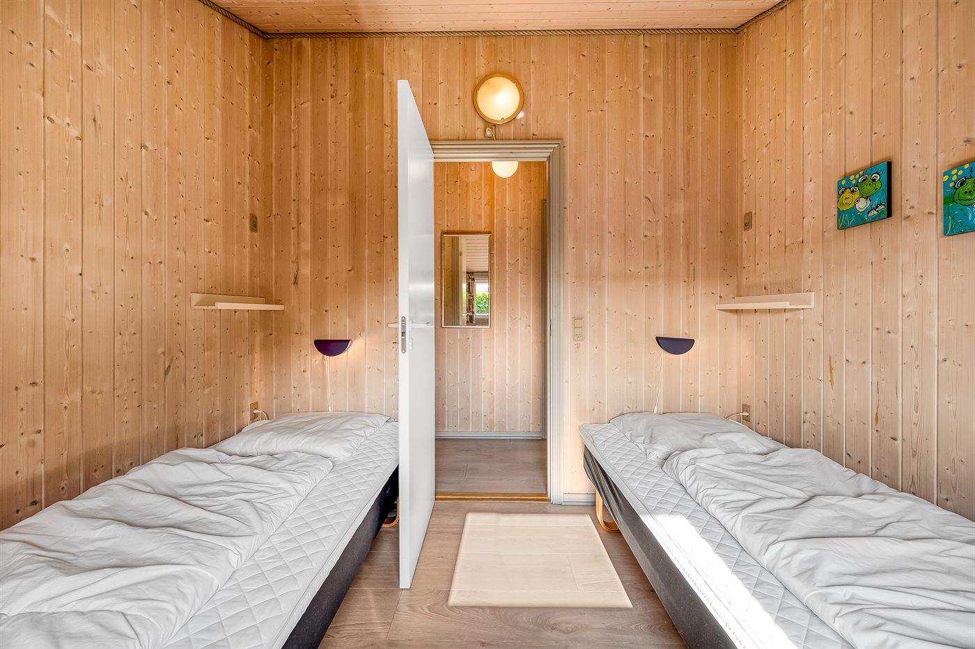 Der er i alt 3 soveværelser. Sovepladserne fordeler sig på: 4 sovepladser i dobbeltsenge. 2 sovepladser i enkeltsenge.