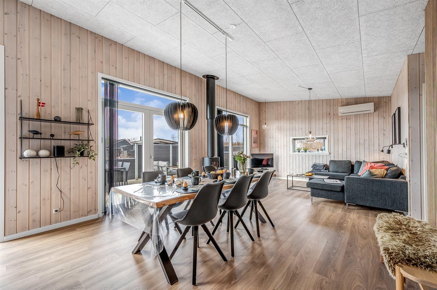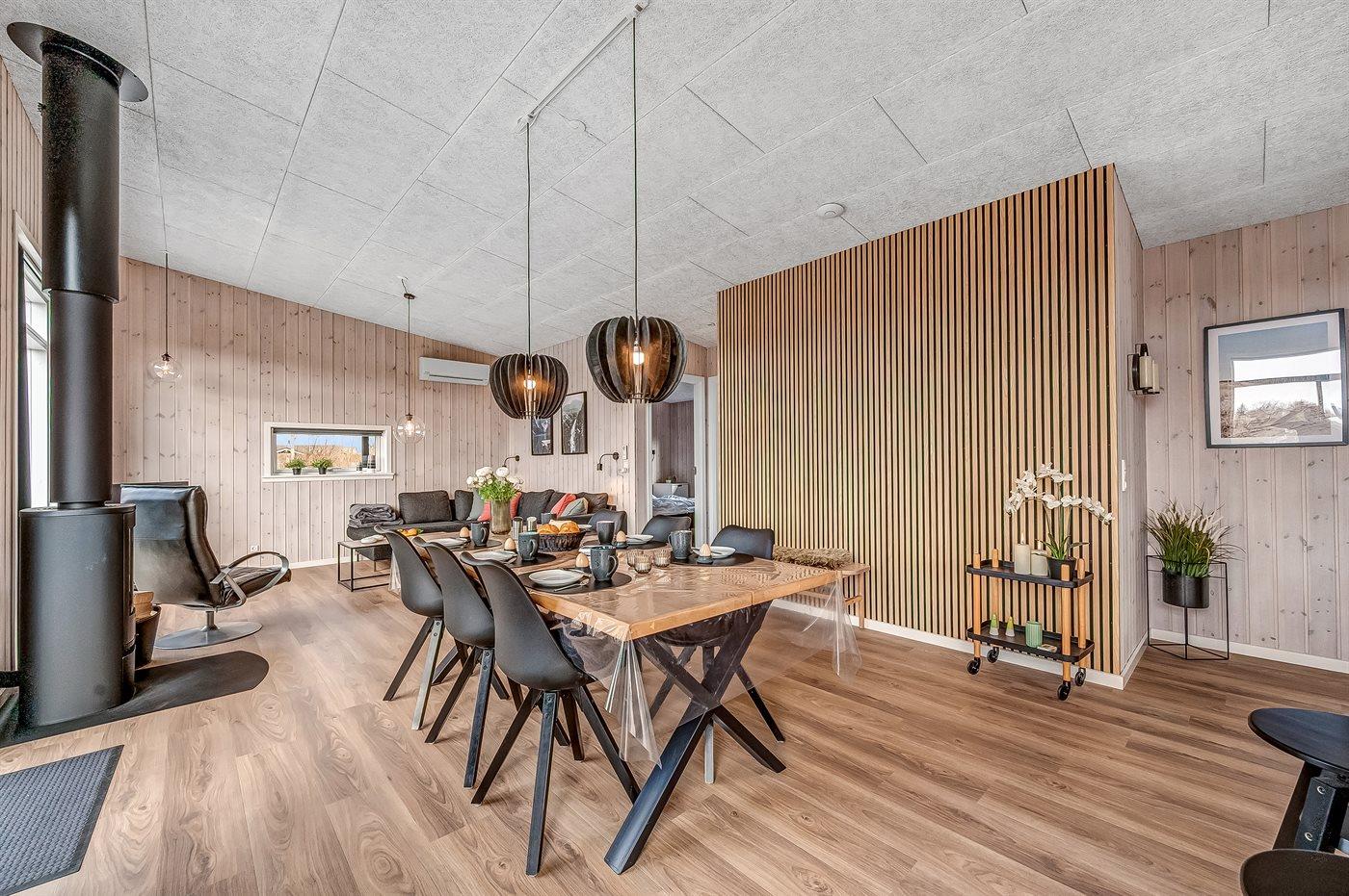 Sommerhuset egner sig til 6 personer. Ferieboligen er på 91 m² og er bygget i 2020. Det er tilladt at medbringe 1 husdyr. Ferieboligen er udstyret med energibesparende varmepumpe. Der er gulvvarme i alle klinkegulve. Ferieboligen har vaskemaskine. Tørretumbler. Frysekapacitet på 85 liter. Der er desuden brændeovn.