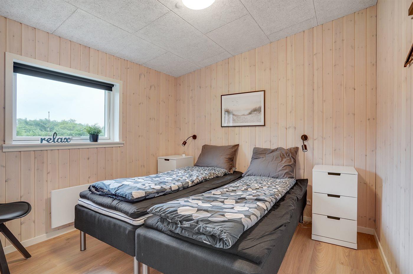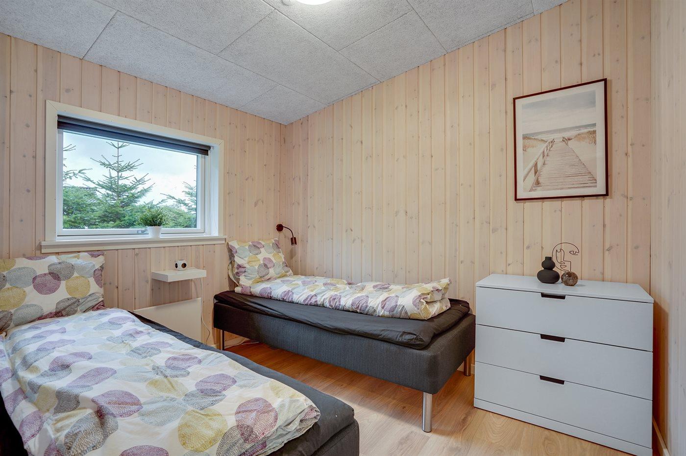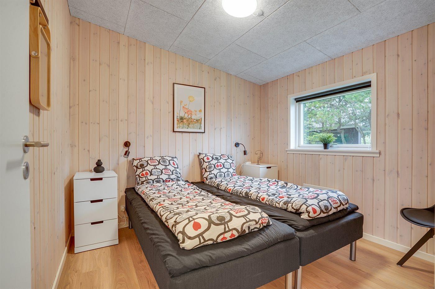 Der er i alt 3 soveværelser. Sovepladserne fordeler sig på: 4 sovepladser i dobbeltsenge. 2 sovepladser i enkeltsenge.