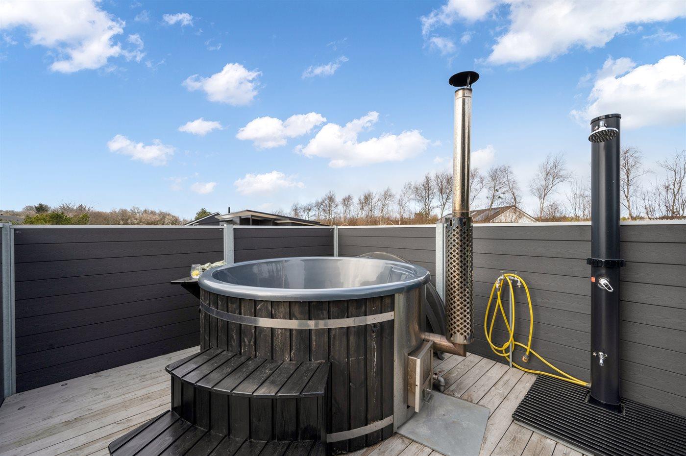 Der er mulighed for afslapning i det udendørs vildmarkskar til 6 personer.