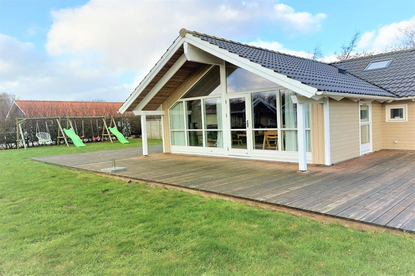 Flot sommerhus ved Bork Havn med spa, sauna og stor naturgrund, perfekt til afslapning året rundt.