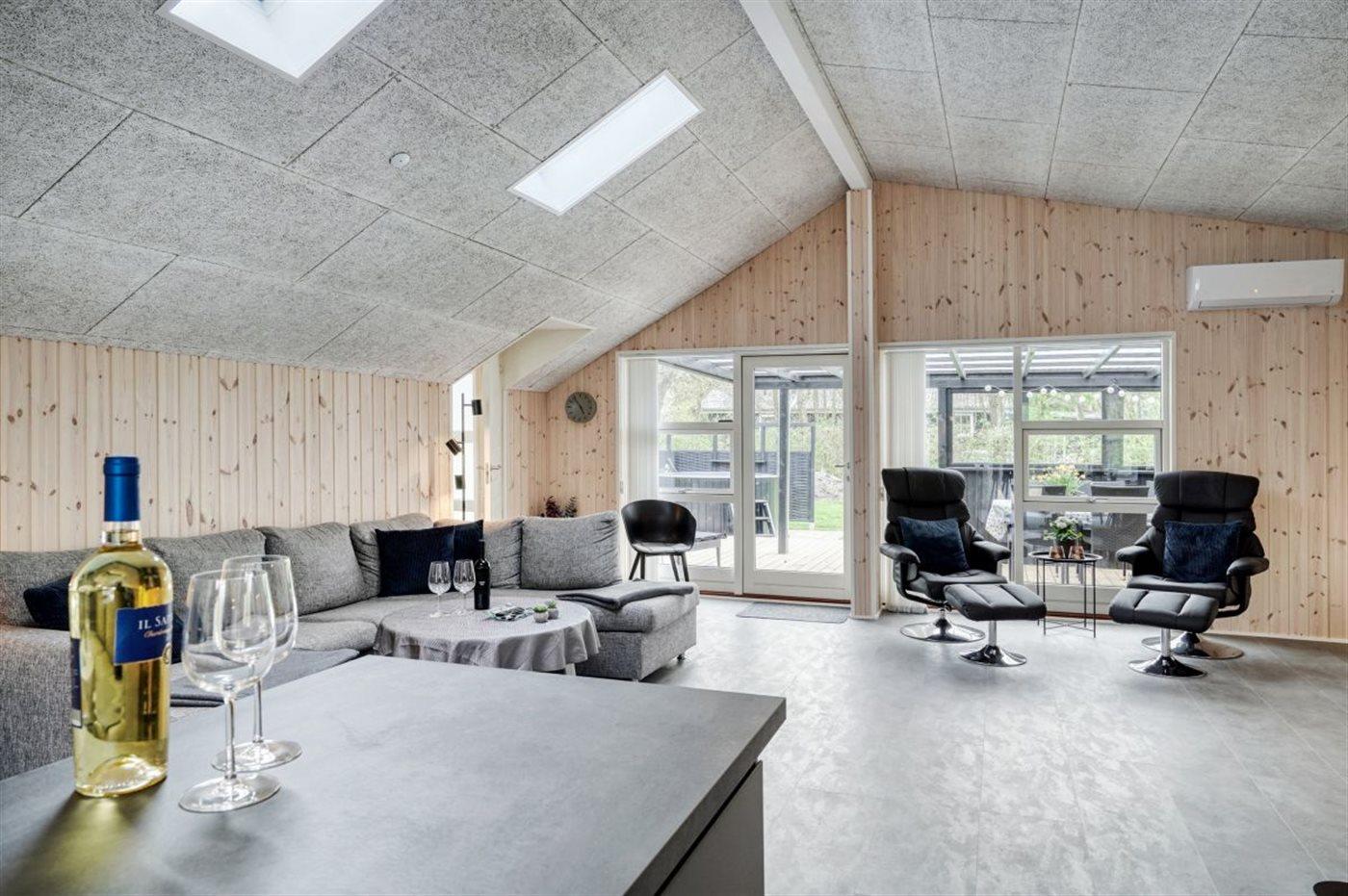Flot sommerhus i Bork Havn med vildmarksbad, aktivitetsrum og spa, totalrenoveret i 2022.