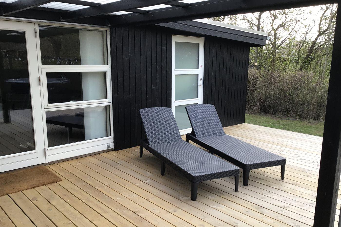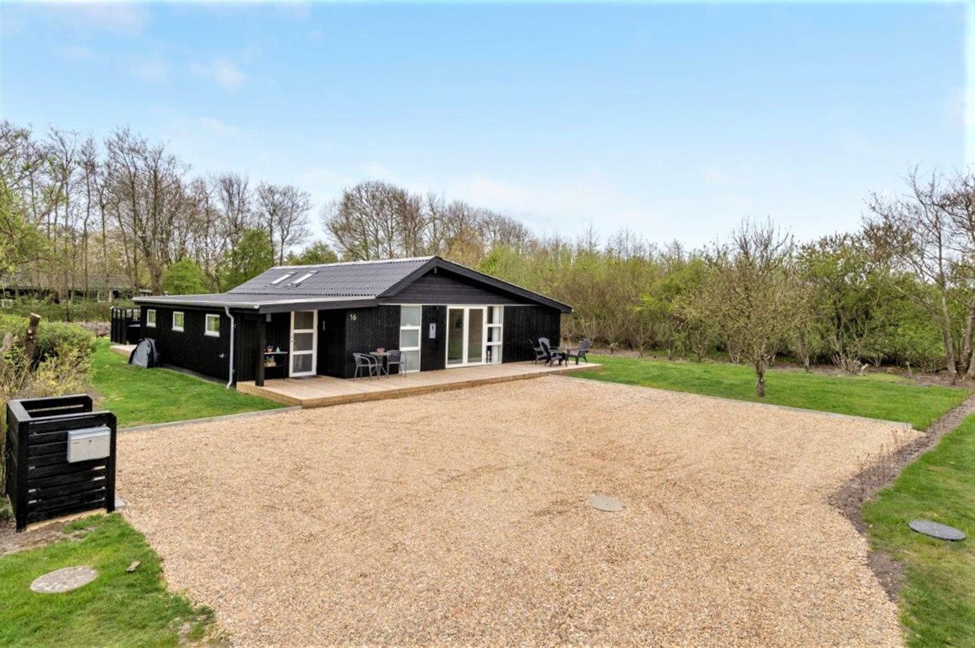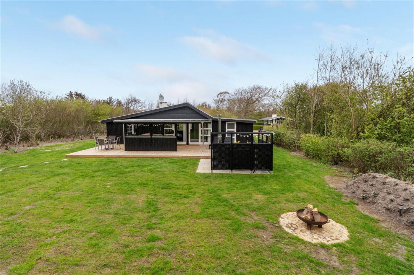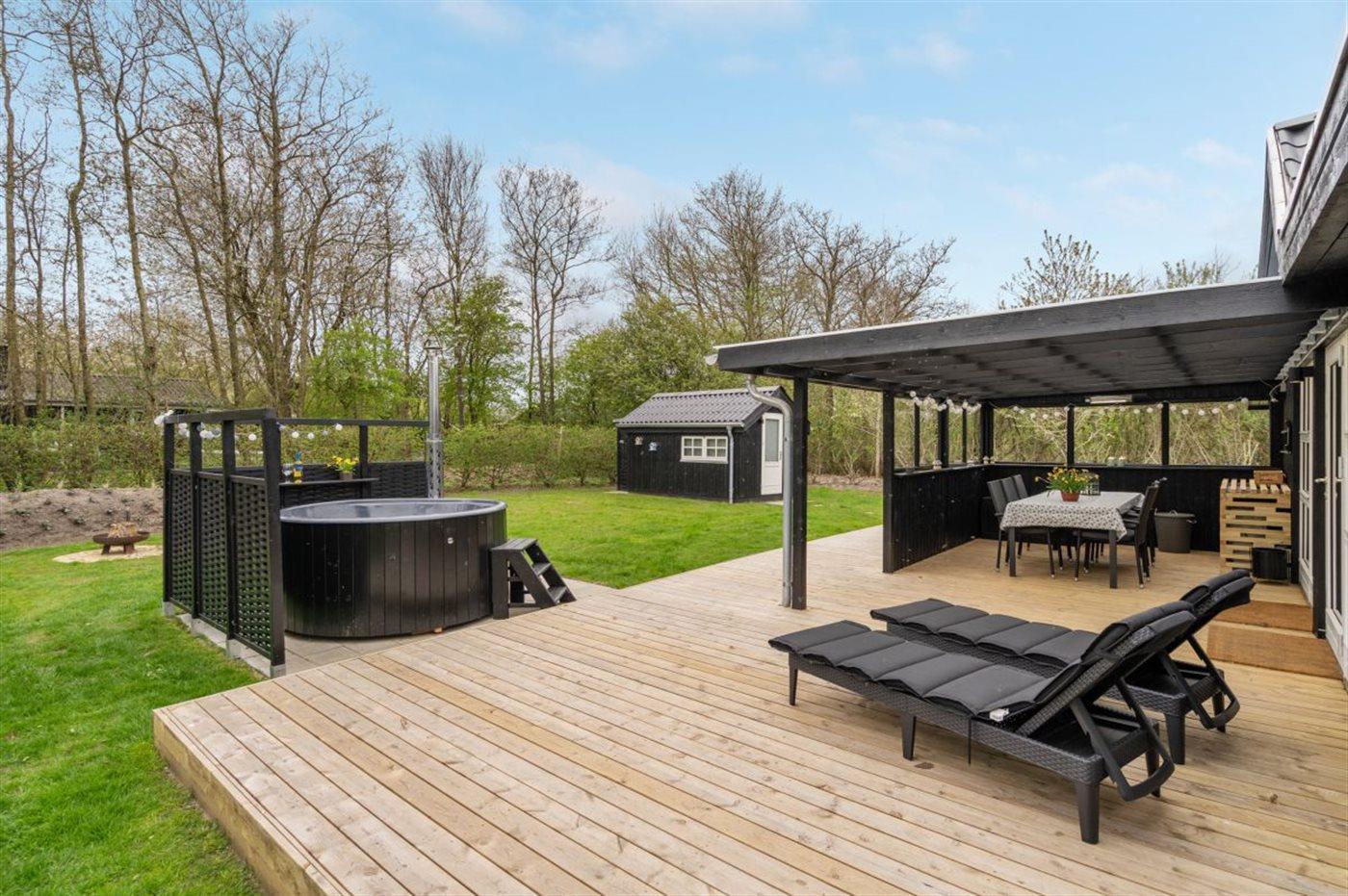 Nær Bork Havn ligger dette flotte og i 2022 totalrenoverede sommerhus. På husets til dels overdækkede terrasse finder I bl.a. et skønt vildmarksbad til 6-personer, som kan benyttes hele året.