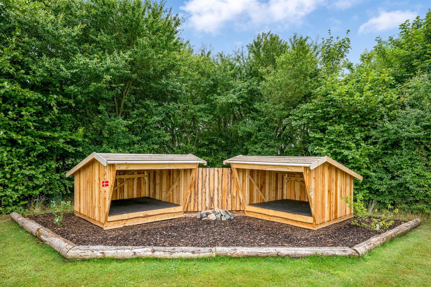Ferieboligen er beliggende på en 1203 m² stor naturgrund. Der er 1400 m til fjorden. Nærmeste forretning er beliggende i en afstand af 1500 m. Til ferieboligen hører åbent terrasseareal. Desuden er der overdækket terrasse. Gynge. Sandkasse. Shelter. Der er carport til rådighed. Der er installeret stik til opladning af elbil. Type 2 stik. Med 10 kW ladeeffekt. Parkering ved ferieboligen.