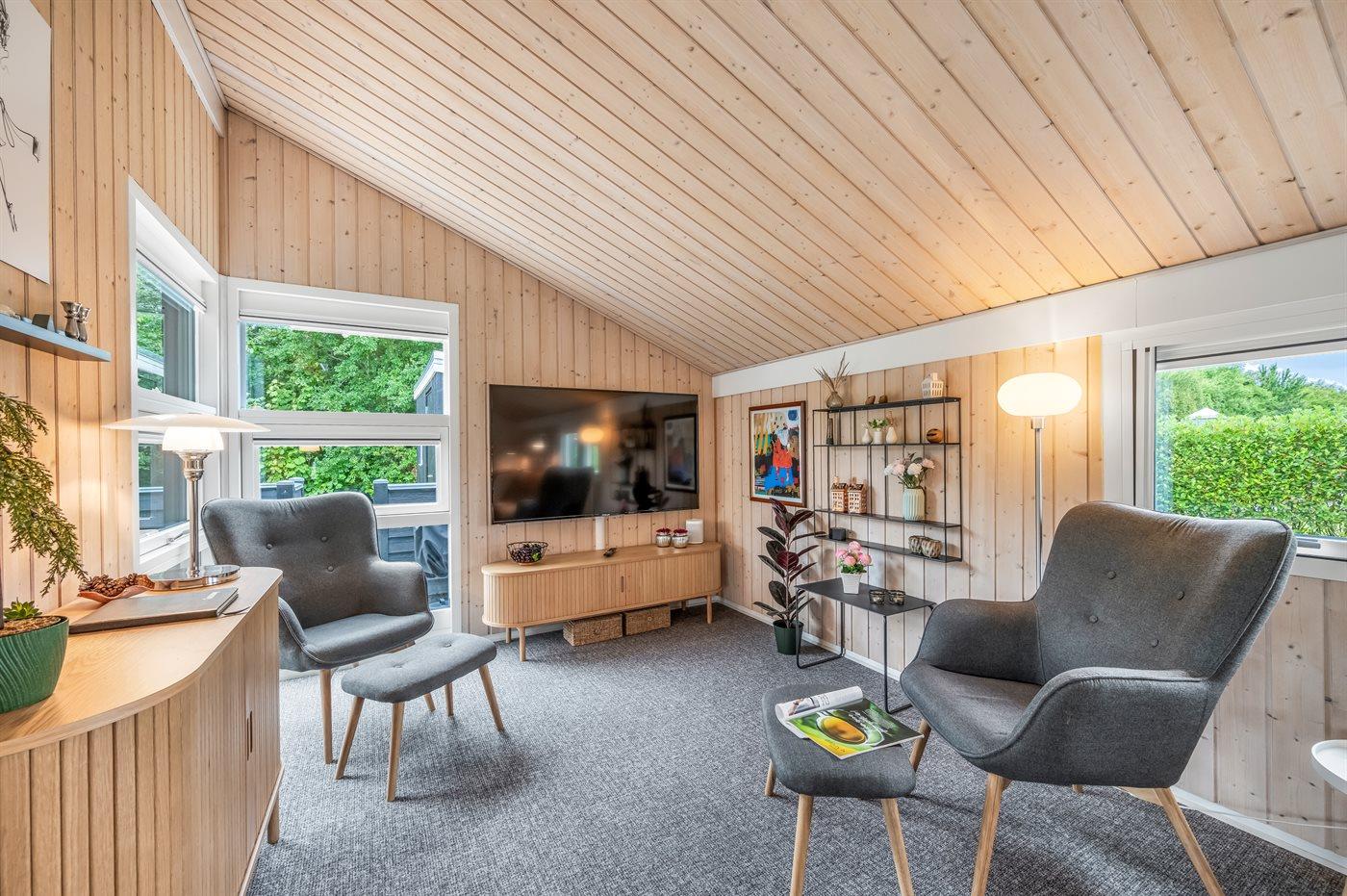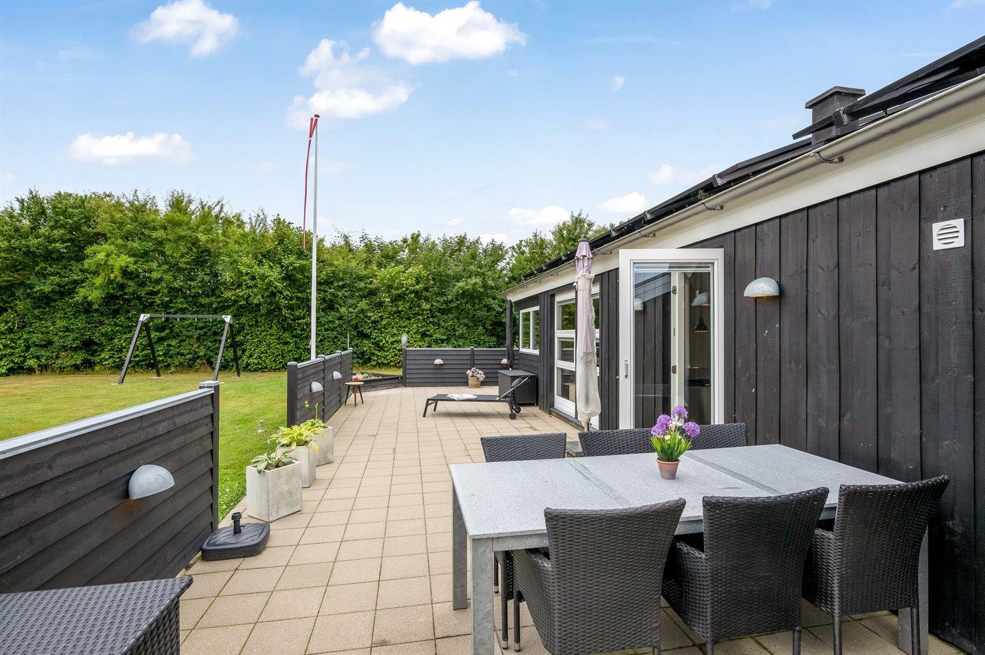 Vil I gerne tilbringe jeres ferie i et sommerhus, der emmer af sjæl og hygge, så er dette skønne sommerhus lige noget for jer. Sommerhusets hjerte er det store og lyse køkken-alrum og udenfor byder sommerhuset på flere flotte terrasser perfekte til både afslapning og sjov og spas.