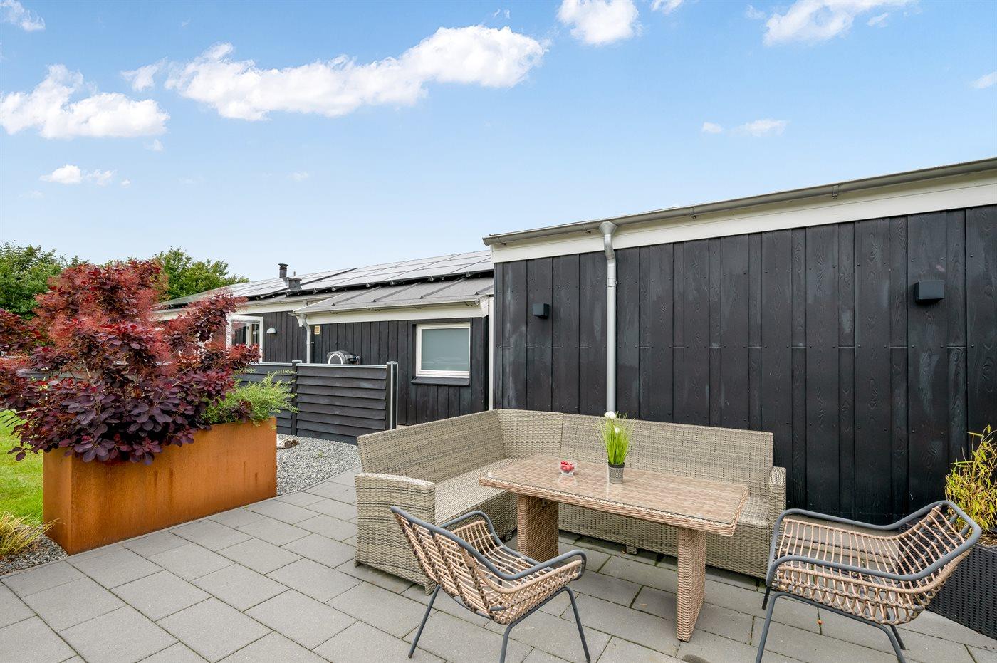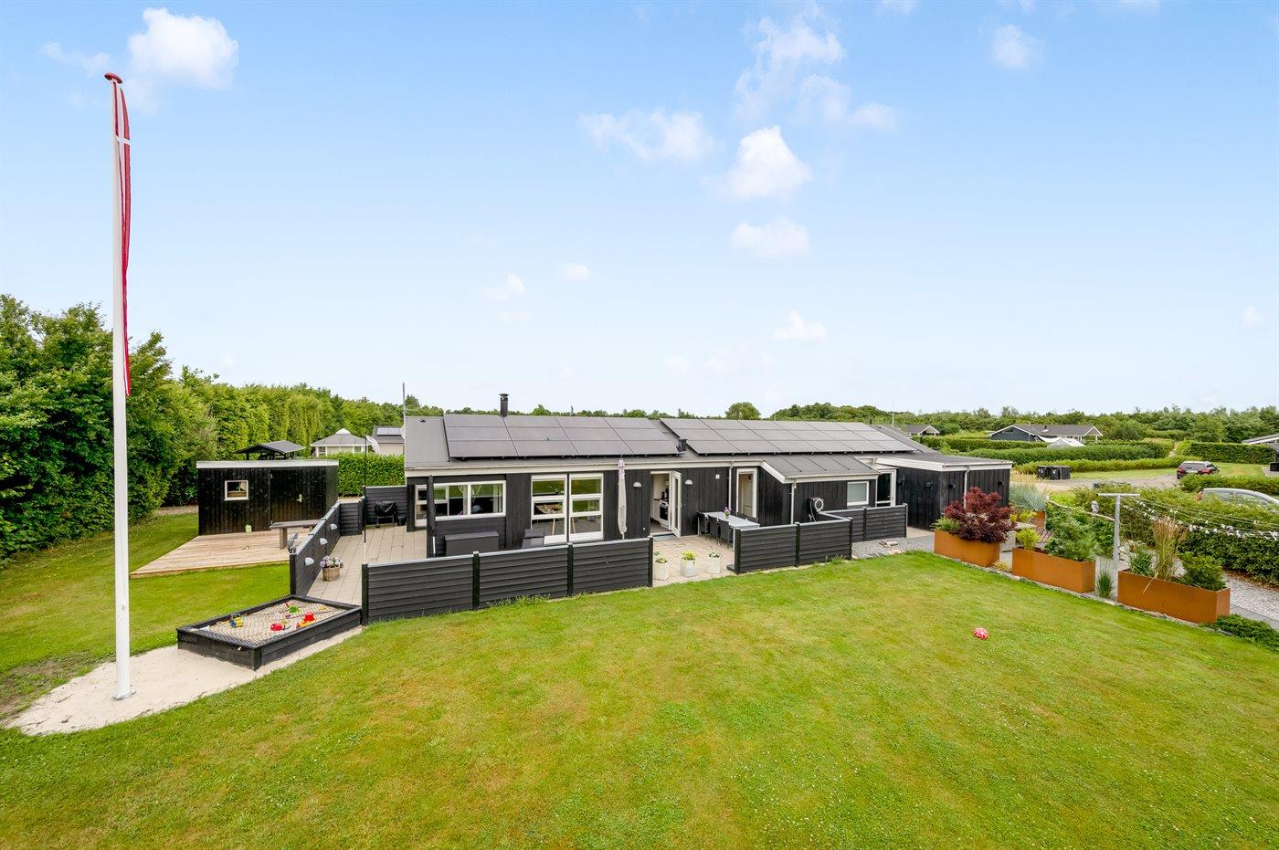 Hyggeligt sommerhus med spa, sauna og flere terrasser nær Ringkøbing Fjord og Bork Havn.