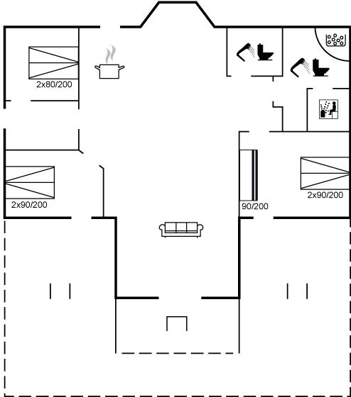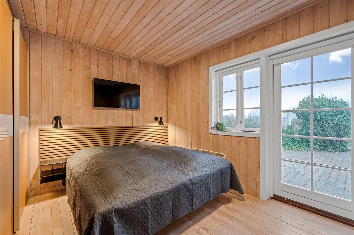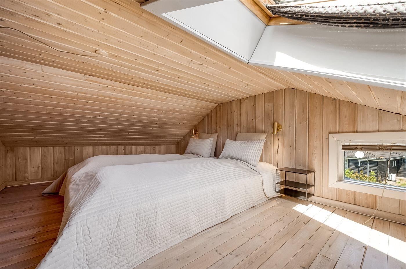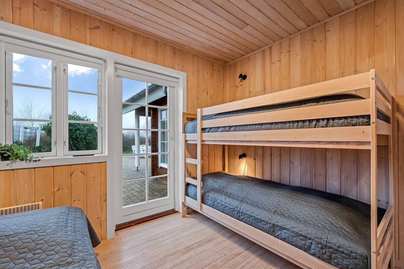 Der er i alt 3 soveværelser. Sovepladserne fordeler sig på: 10 sovepladser i dobbeltsenge. 1 soveplads i enkeltseng. 2 sovepladser i køjeseng. 5 af disse sovepladser fordeler sig på 2 hemse. Derudover er der 1 stk. barneseng.