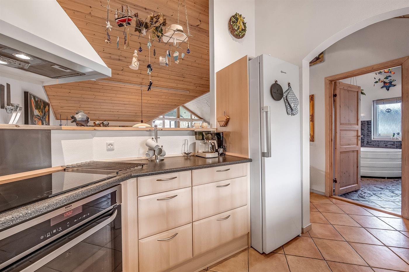 Køkkenet er udstyret med 1 køleskab. Der er 4 keramiske kogeplader, varmluftovn, mikrobølgeovn samt opvaskemaskine.