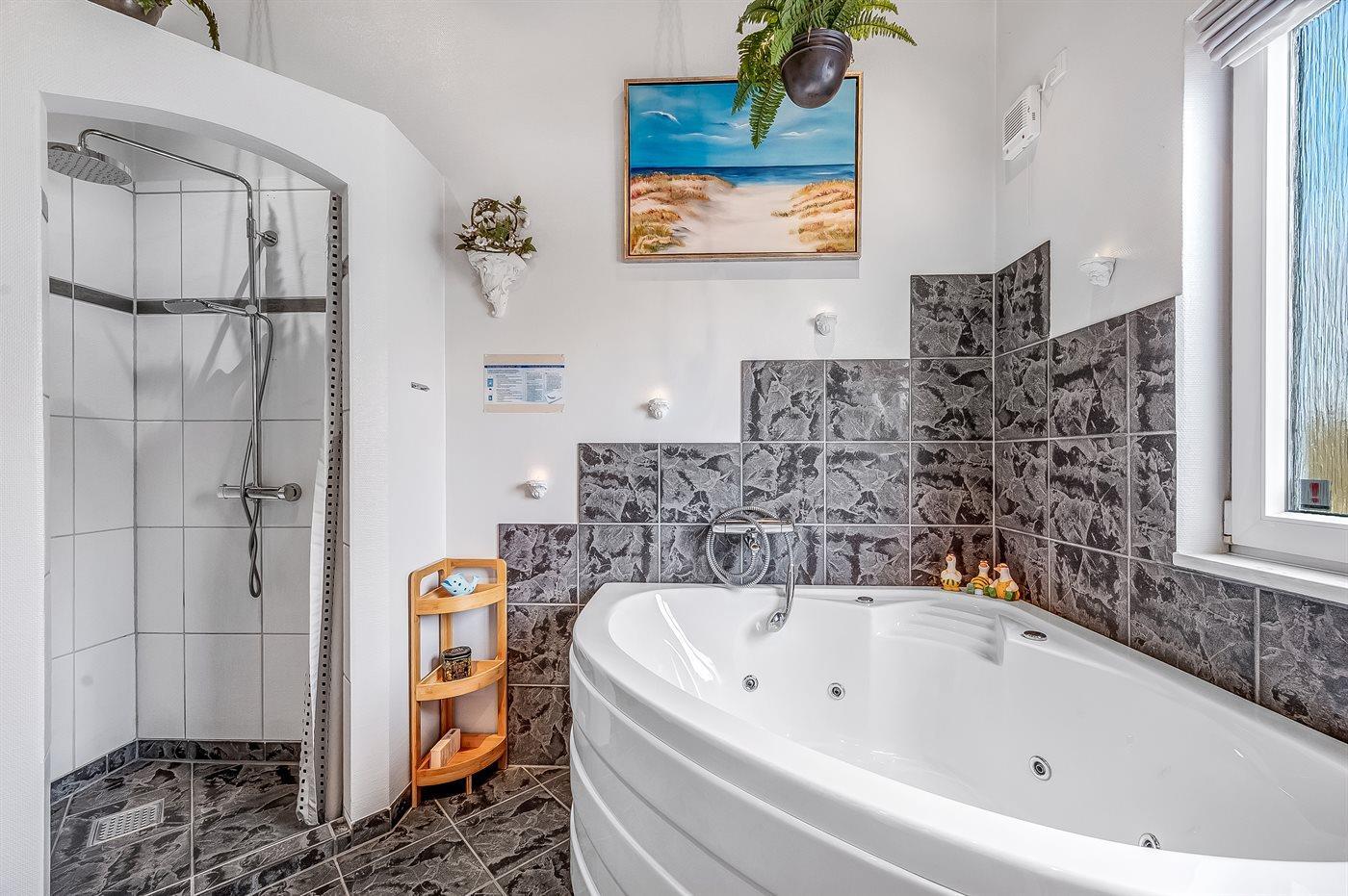I samme øjeblik, du træder ind i køkken-alrummet, bydes du velkommen af et lyst og indbydende interiør, der straks får dig til at føle dig hjemme og du vil nyde lyset der strømmer ind af det store vinduesparti. Det flotte badeværelse er en oase af velvære, hvor du kan nyde et afslappende bad i husets spa efter en dag med aktiviteter i det smukke og naturskønne lokalområde.