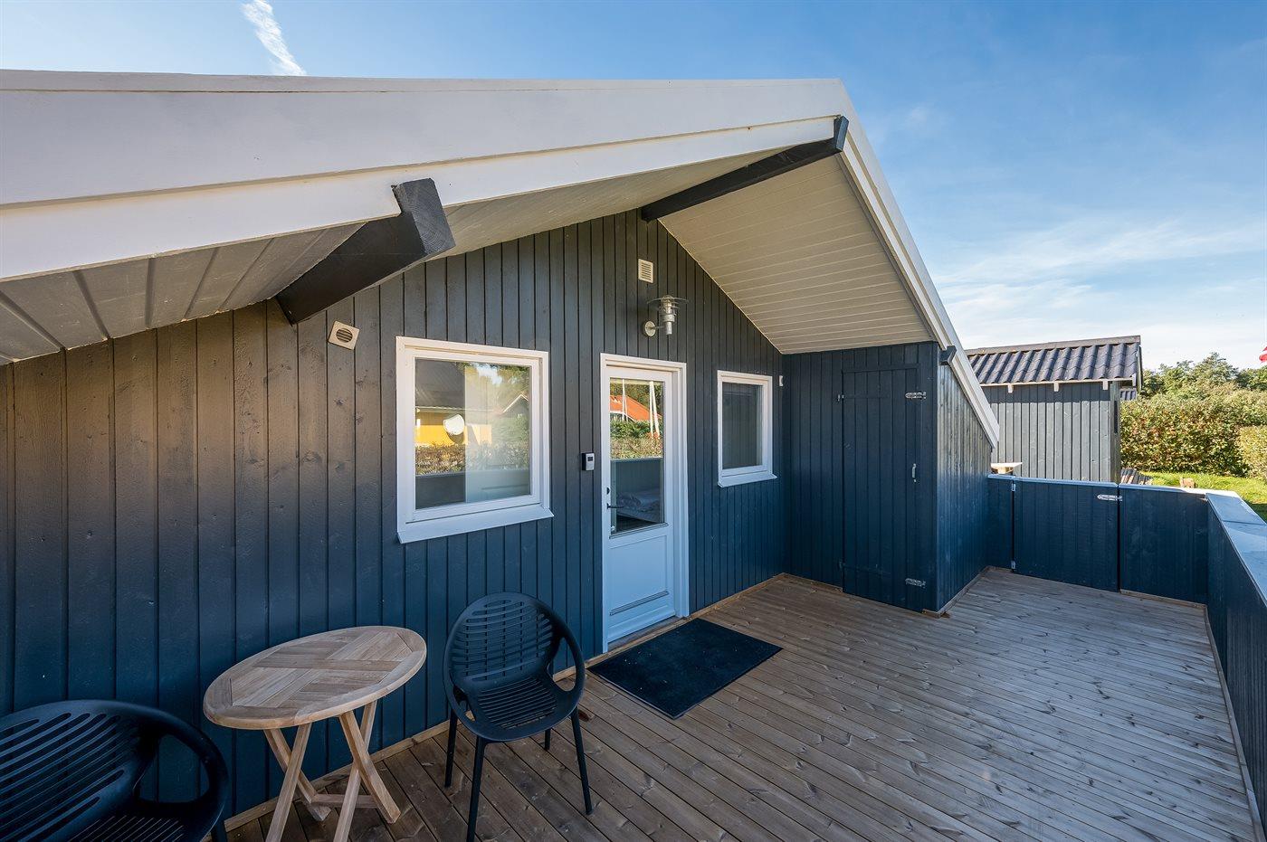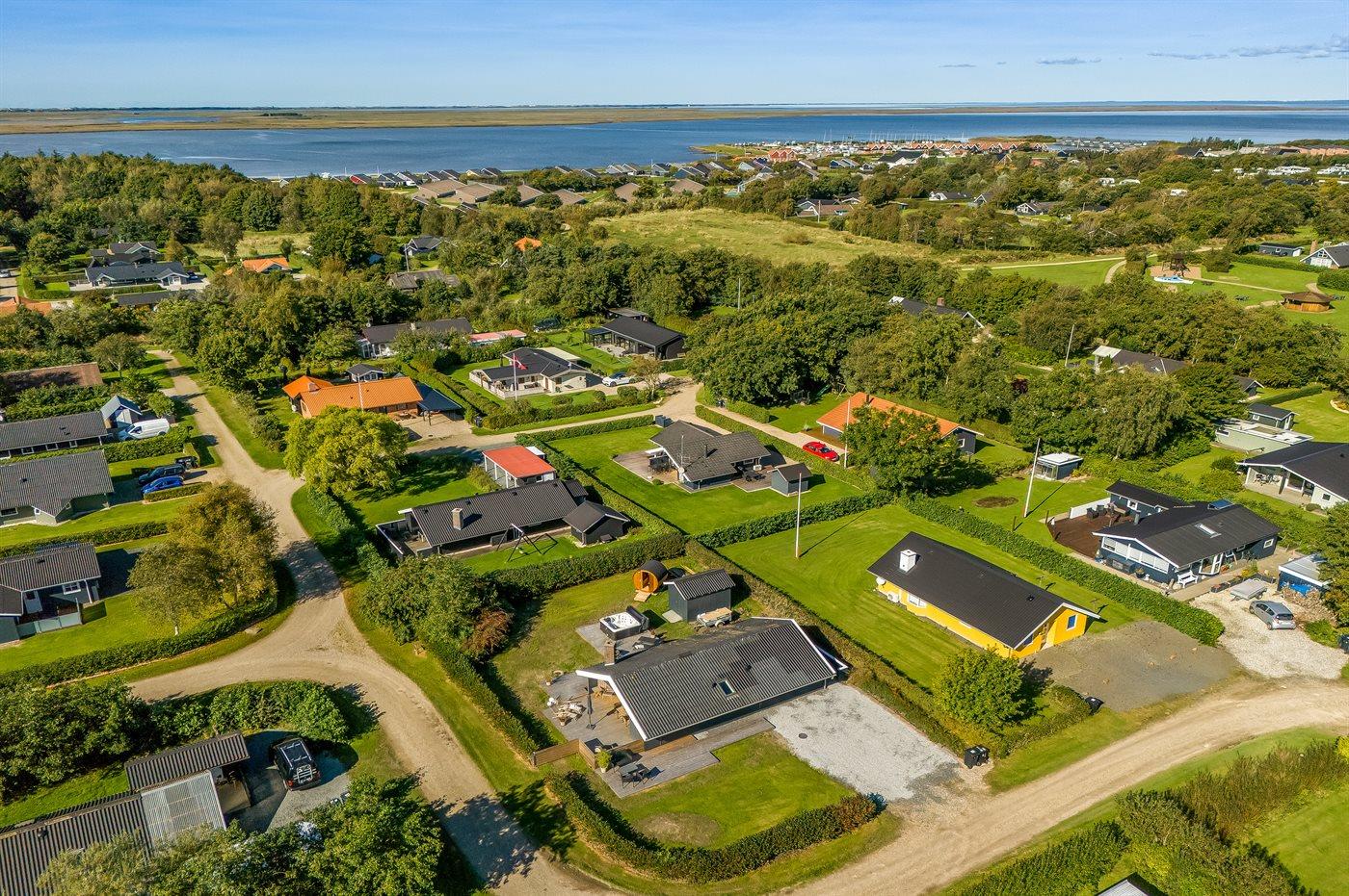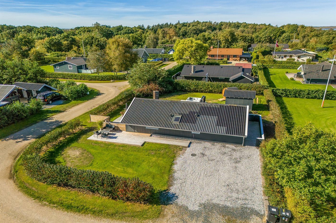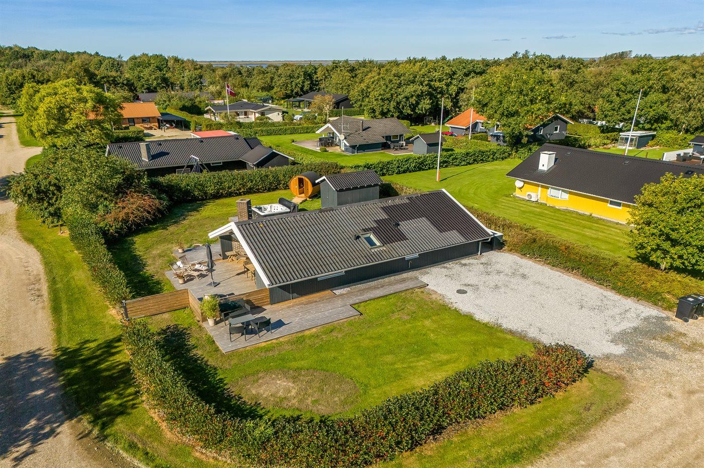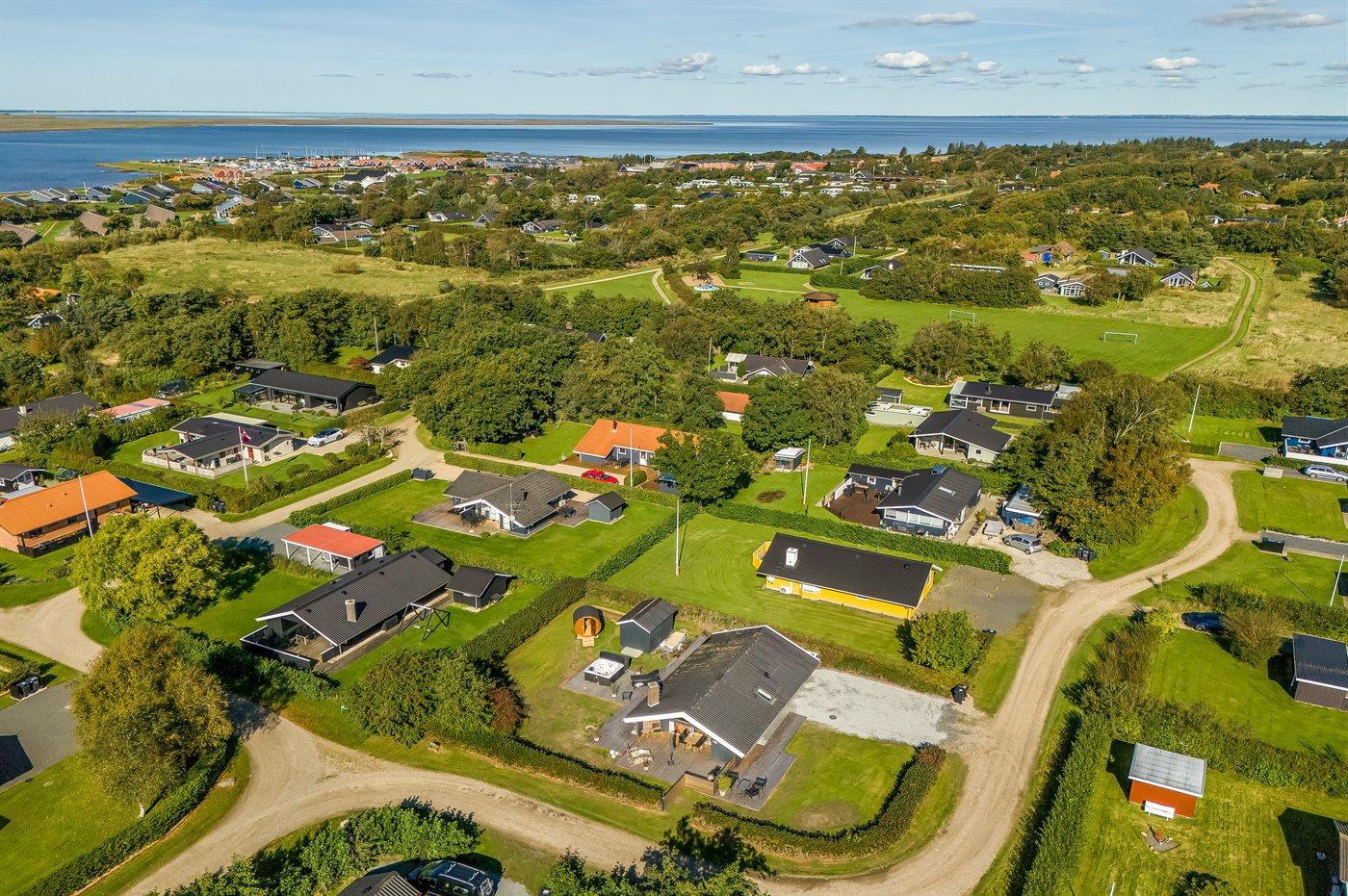 Ferieboligen er beliggende på en 714 m² stor naturgrund. Grunden er indhegnet. Der er 8000 m til havet. Der er 200 m til fjorden. Nærmeste forretning er beliggende i en afstand af 800 m. Til ferieboligen hører åbent terrasseareal. Desuden er der overdækket terrasse. Der er redskabsrum. Udendørs sauna. Grill til rådighed. Parkering ved ferieboligen.