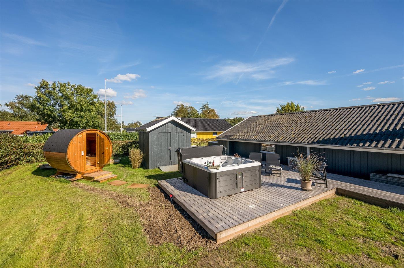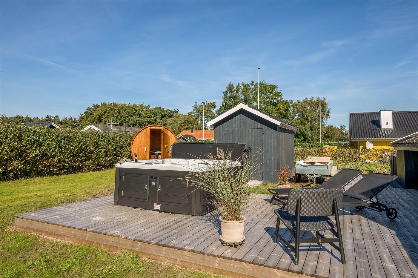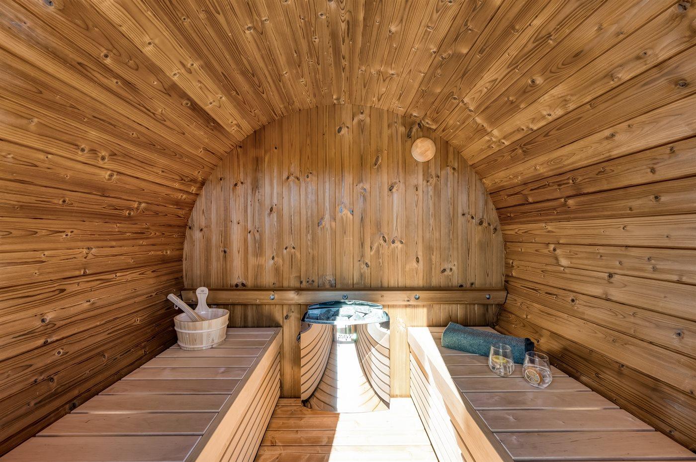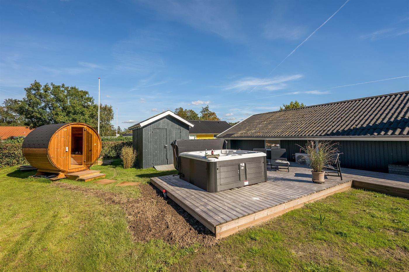 Vil I for alvor skrue op for luksus og selvforkælelse, kan I nyde sommerhusets lækre terrassemiljø og tænde for den udendørs sauna eller slappe af i den udendørs spa, hvorfra der om aftenen er frit udsyn til den smukke, klare stjernehimmel.