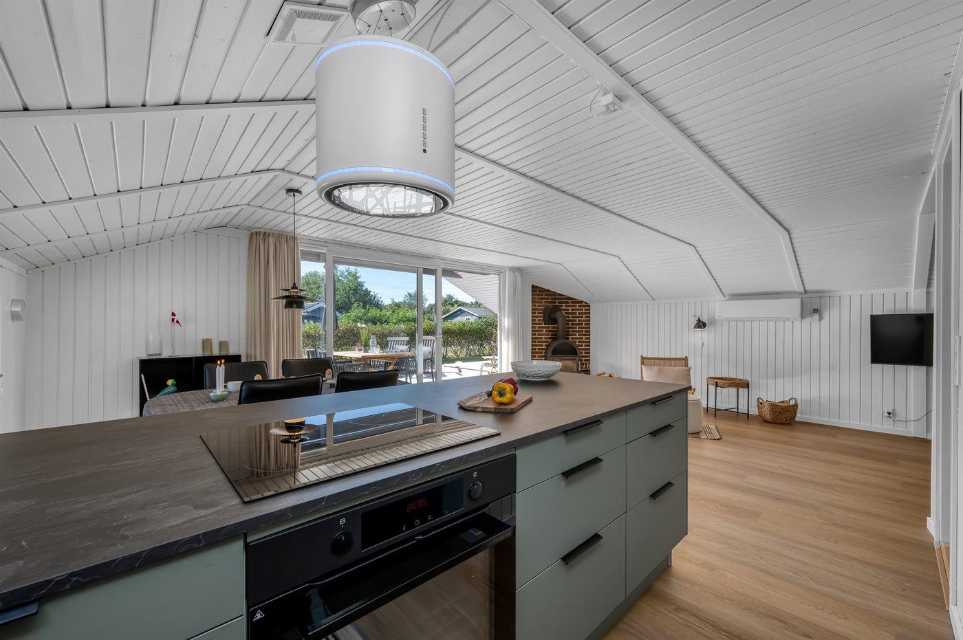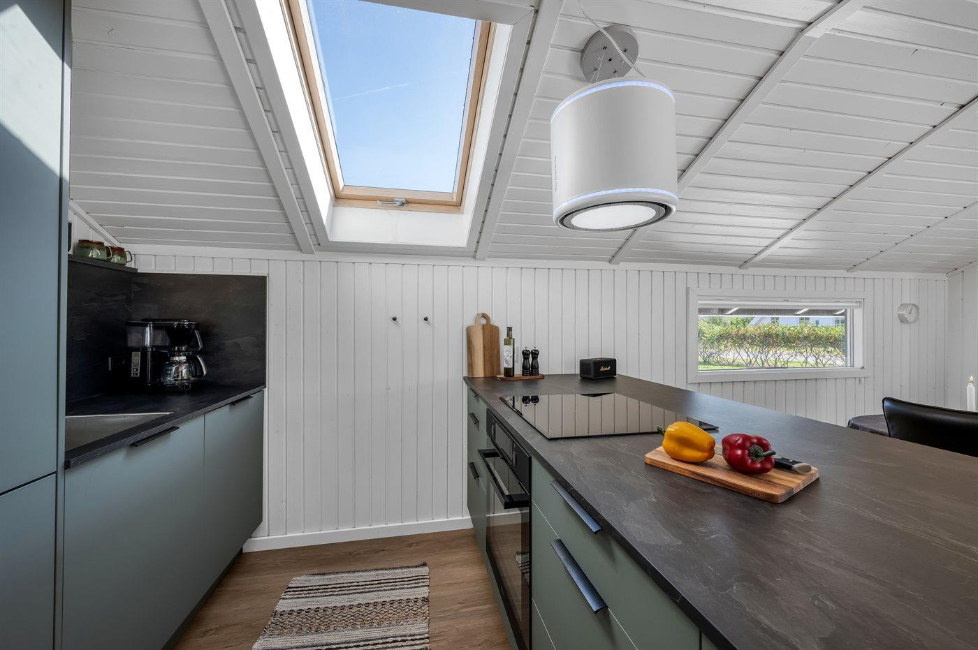 Køkkenet er udstyret med 1 køleskab. Der er 4 keramiske kogeplader, varmluftovn, mikrobølgeovn samt opvaskemaskine.