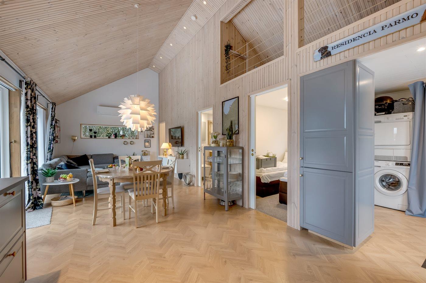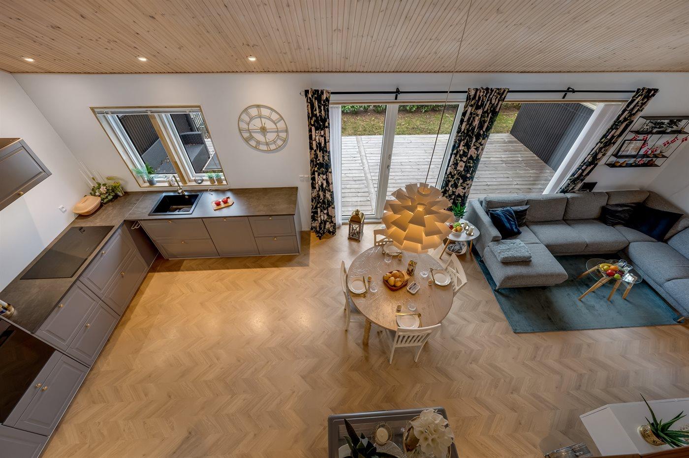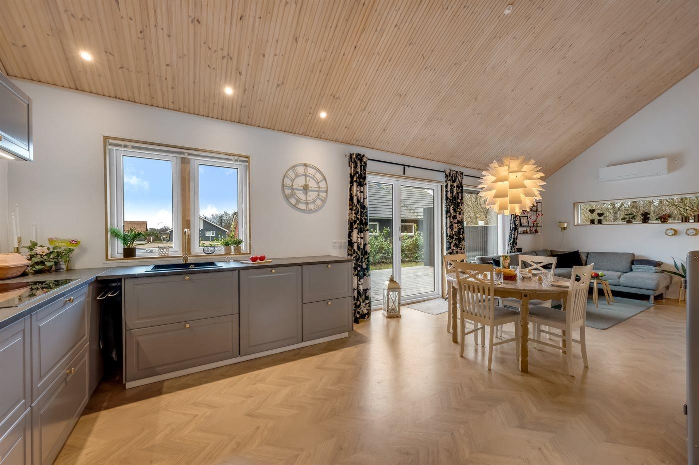 Køkkenet er udstyret med 1 køleskab. Der er 4 induktionskogeplader, varmluftovn, mikrobølgeovn, Airfryer samt opvaskemaskine.
