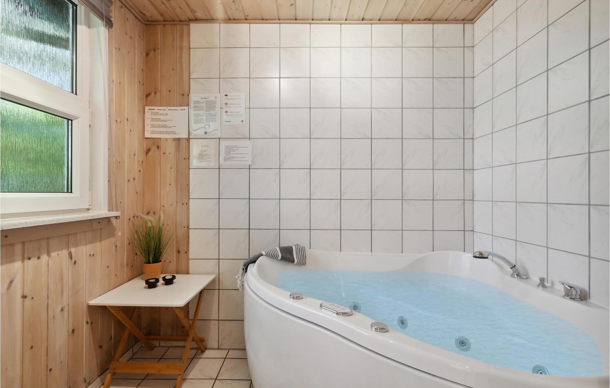 Velholdt sommerhus på lukket naturgrund med spabad, brændeovn og legefaciliteter nær Ringkøbing Fjord.