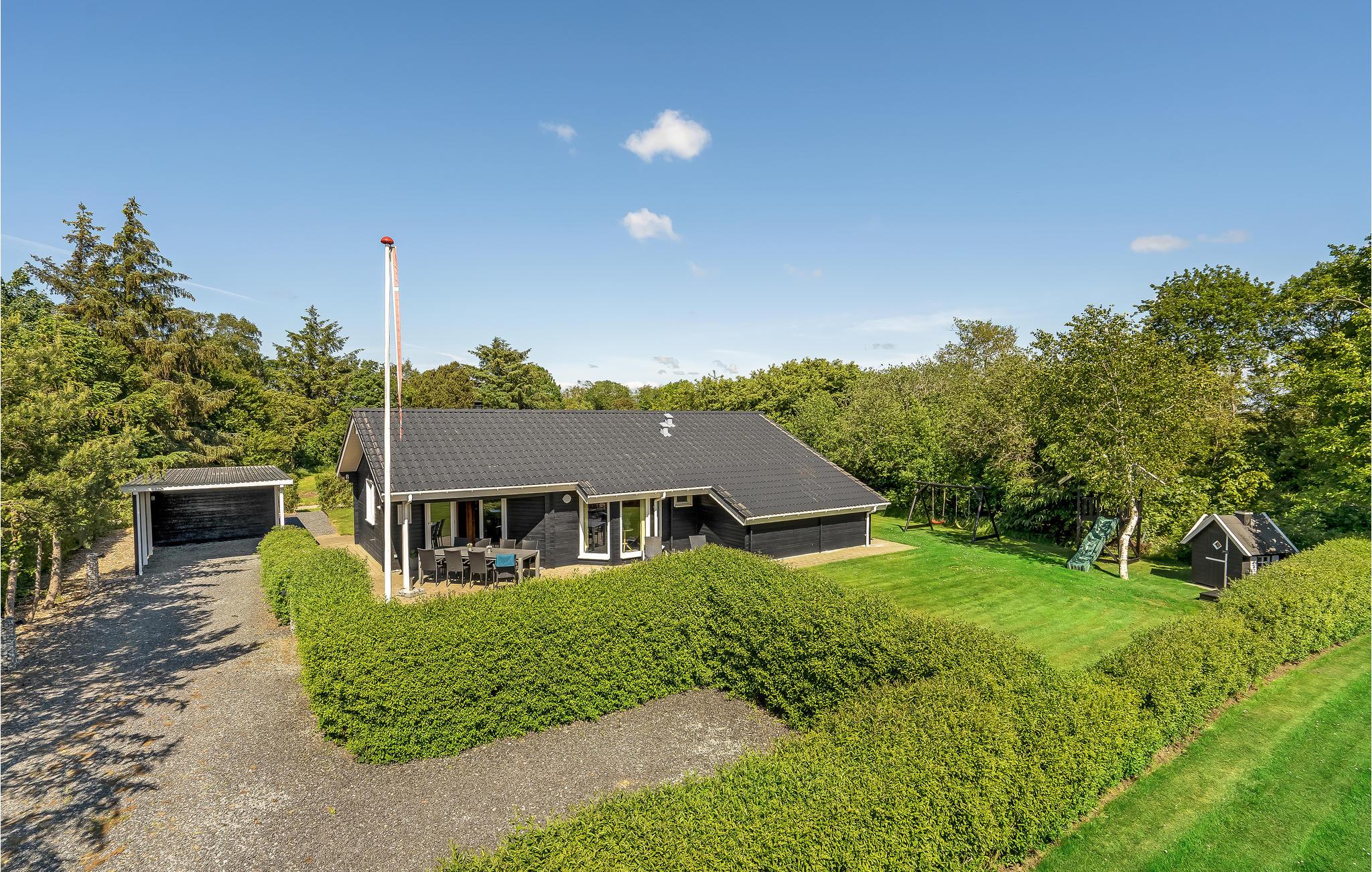 Rustikt og meget børnevenligt bjælkehus ved Bork Havn og i gåafstand af fjorden. Der er indrettet større legeplads på grunden med bl.a. legeborg, gynger, sandkasse samt bålplads. Fra det rummelige køkken/alrum med brændeovn er der direkte udgang til delvis overdækket terrasse og i husets dejlige badeværelse er der en der spabad, samt adgang til sauna. God og ugenert morgenterrasse. I området finder I også havnen, restauranter, indkøbsmuligheder og den nærliggende vikingelandsby.