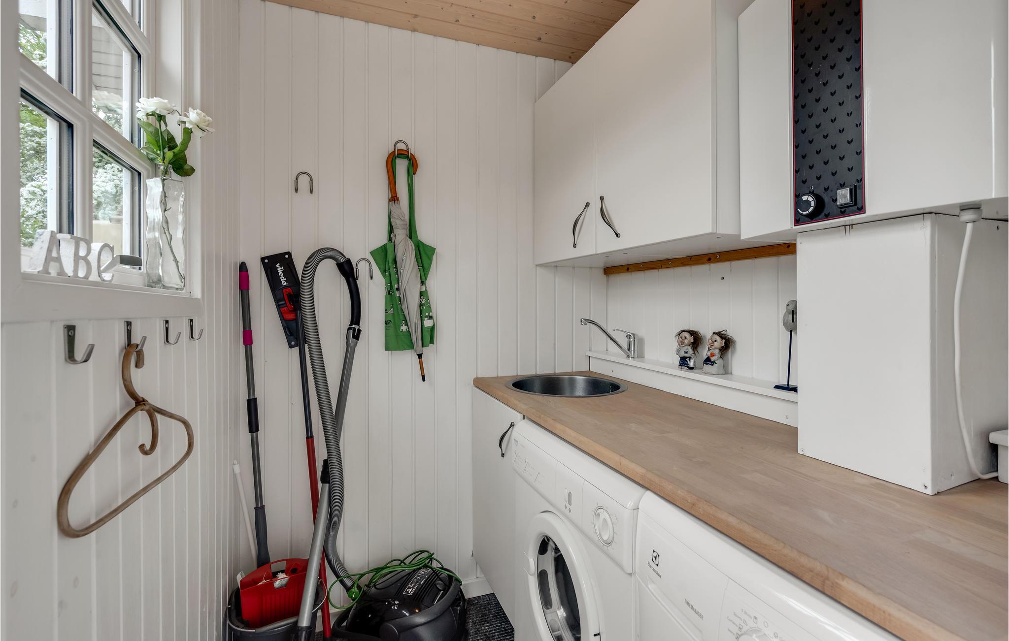 Siger man Bork Havn, kommer ordene surfing, strand, vikingetema og børnevenligt helt naturligt i samme sætning. Huset her ligger nemlig i bunden af Ringkøbing Fjord ved Bork Havn. Huset fremstår lyst og flot, og I kan se, at der kræset om detaljerne. I hjertet af huset ligger det store køkken/alrum med en flot køkkenafdeling, tv-stue med fladskærm og brændeovn der kan lave hyggestemning hen på de sene aftentimer. I den ene ende af huset ligger der to soveværelser, hvoraf det ene har egen udgang til en stort sydvendt træterrasse med et dejligt lukket, overdækket areal. Netop på denne terrasse vil mange timer kunne nydes med solbadning, frokost med grilning eller leg i haven. I modsatte ende af huset ligger det flotte lyse badeværelse med brus, yderligere et soveværelse og et lille vaskerum med vaskemaskine og tørretumbler. På nordsiden er der mellem huset og et lille skur, yderligere en fin træterrasse. Har I selv medbragt cykler, er der mulighed for at kunne stille dem i et aflåst skur. Få minutters gåtur fra huset ligger en legeplads, og købmand, restaurant samt havnen kan også nås på kort tid. Gå en tur langs havnen mens I nyder en is, eller I tag evt. en familiedyst i minigolf. Bork Legeland ligger blot 1,5 km fra huset. Legoland og Givskud Zoo kan nås i bil indenfor en time.