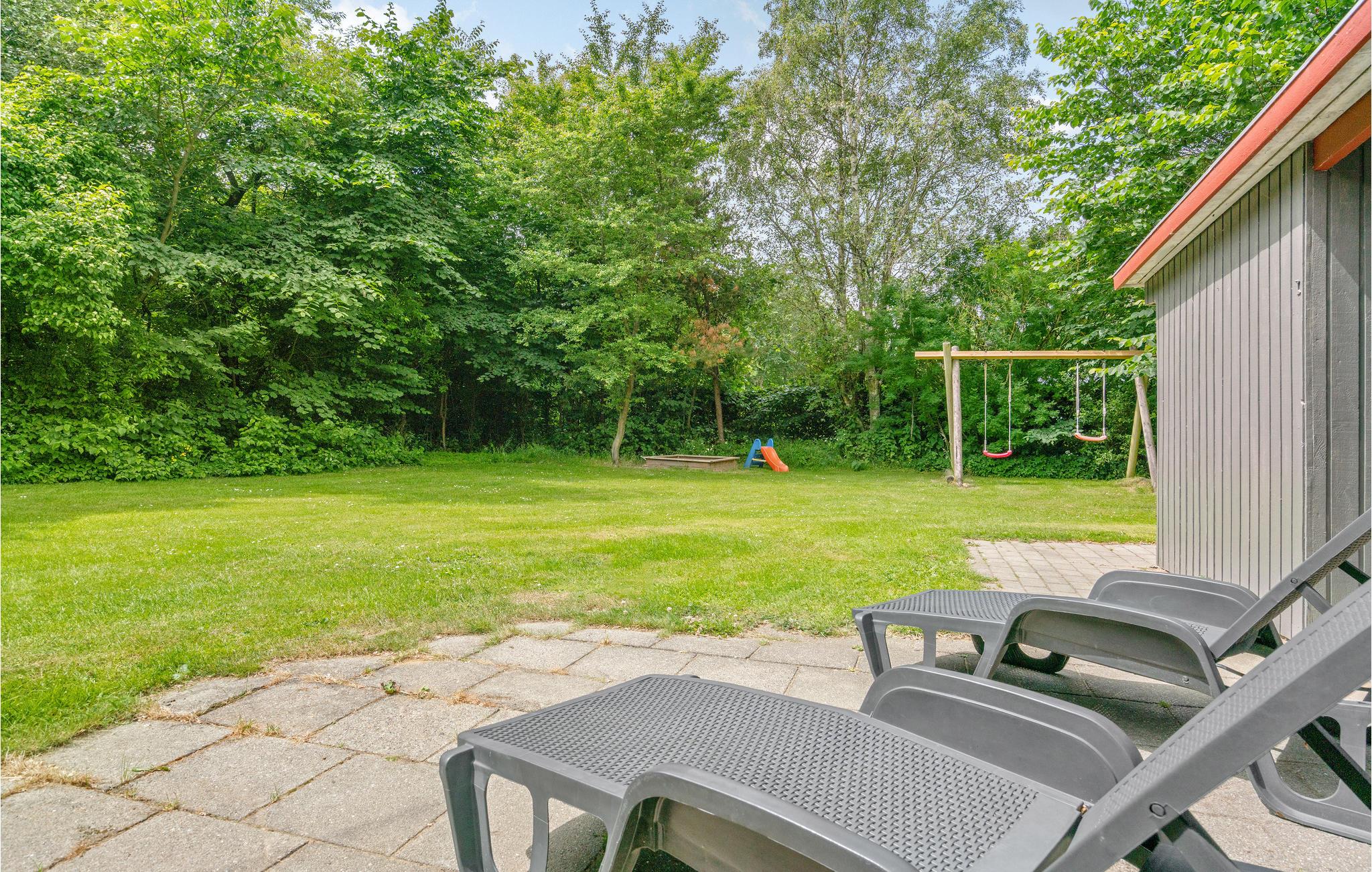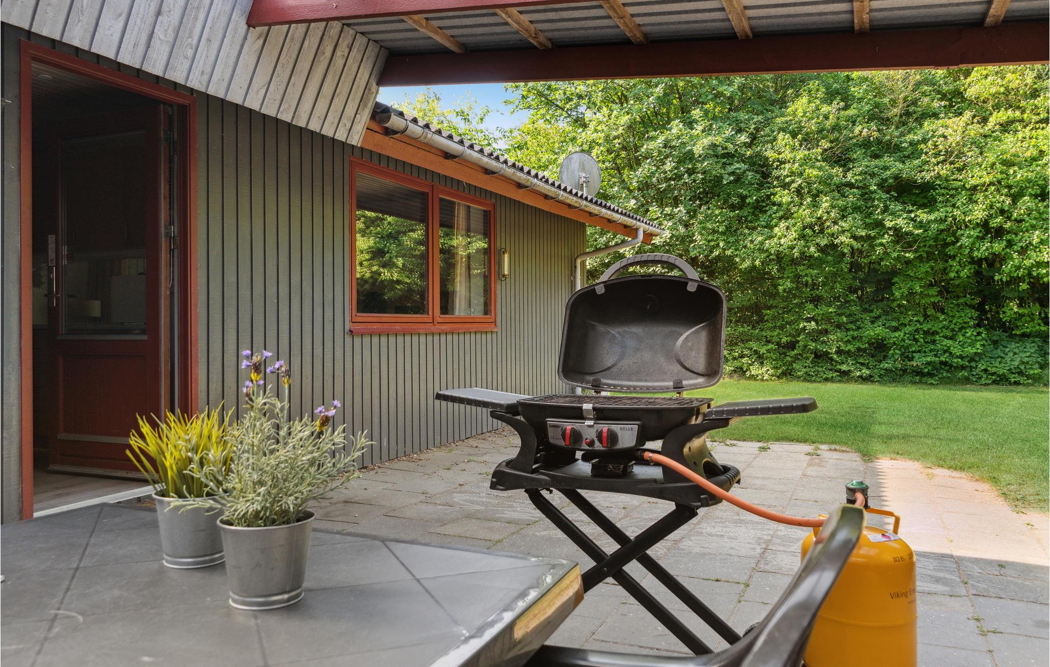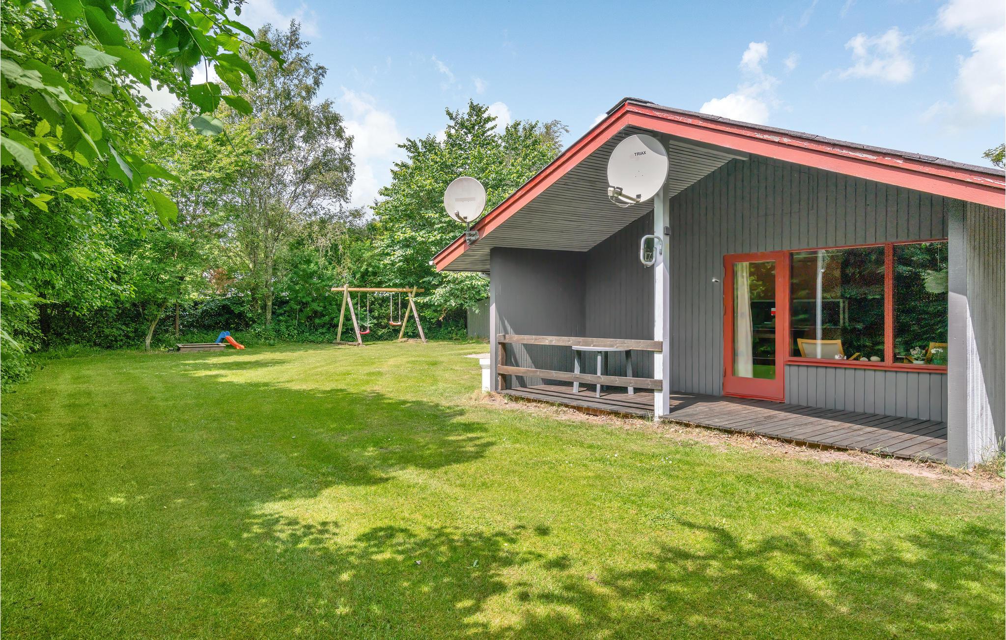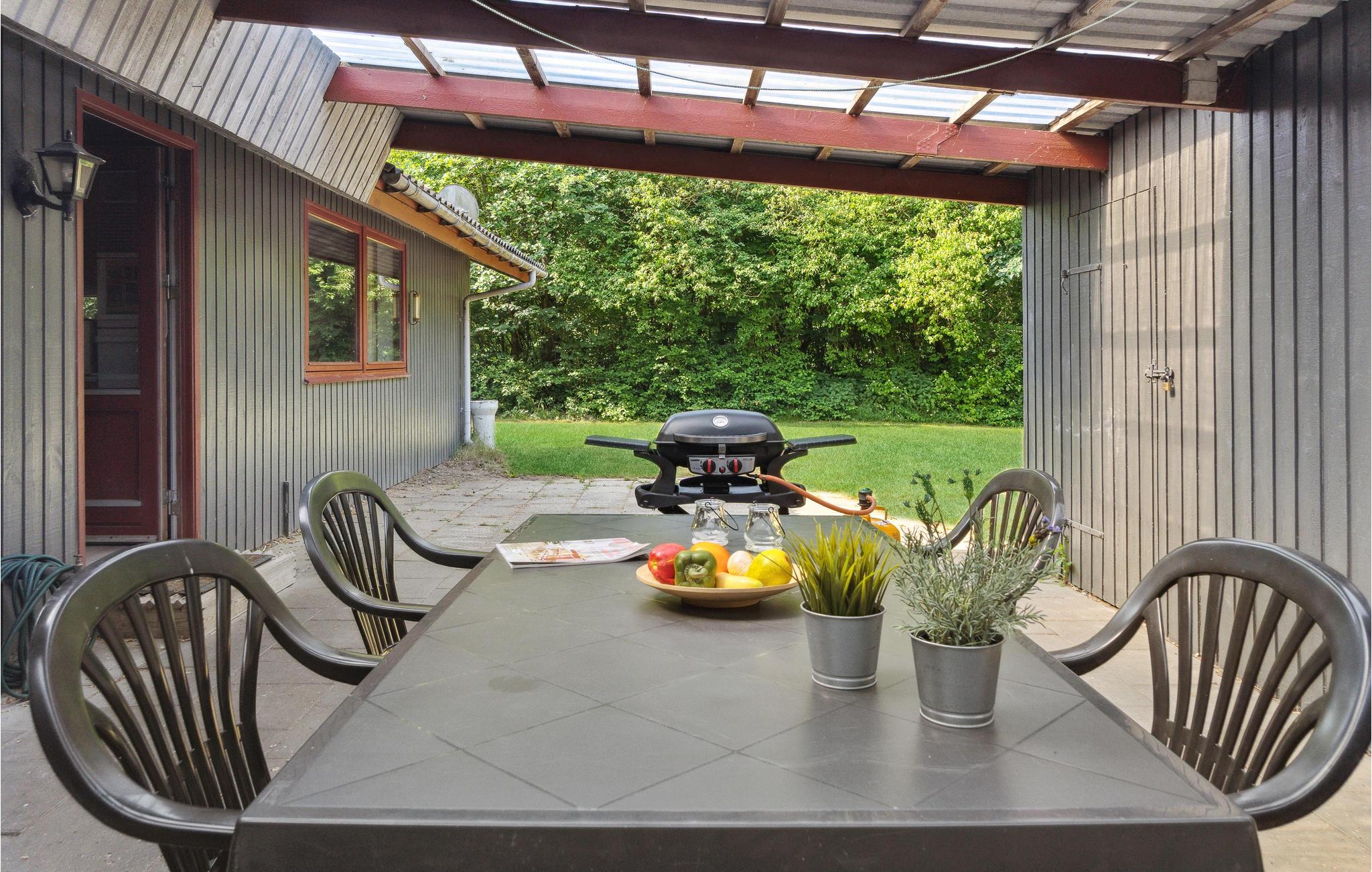På den store, overdækkede terrasse kan I grille og nyde solen, mens børnene leger i haven - der er hygge med gynge, sandkasse og stor græsplæne.