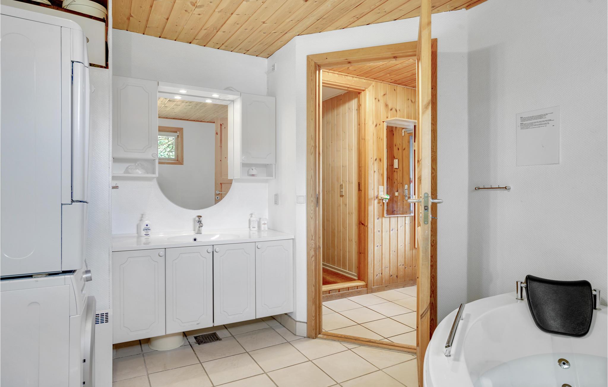 Dette praktiske feriehus byder på et godt tilbud til et afslappende ophold. Den åbne opholdsstue med en komfortabel stue, spisestue og veludstyret køkken lægger op til tid sammen. Tænd brændeovnen og slap af. Nyd afslappende stunder i boblebadet eller foran fjernsynet.
