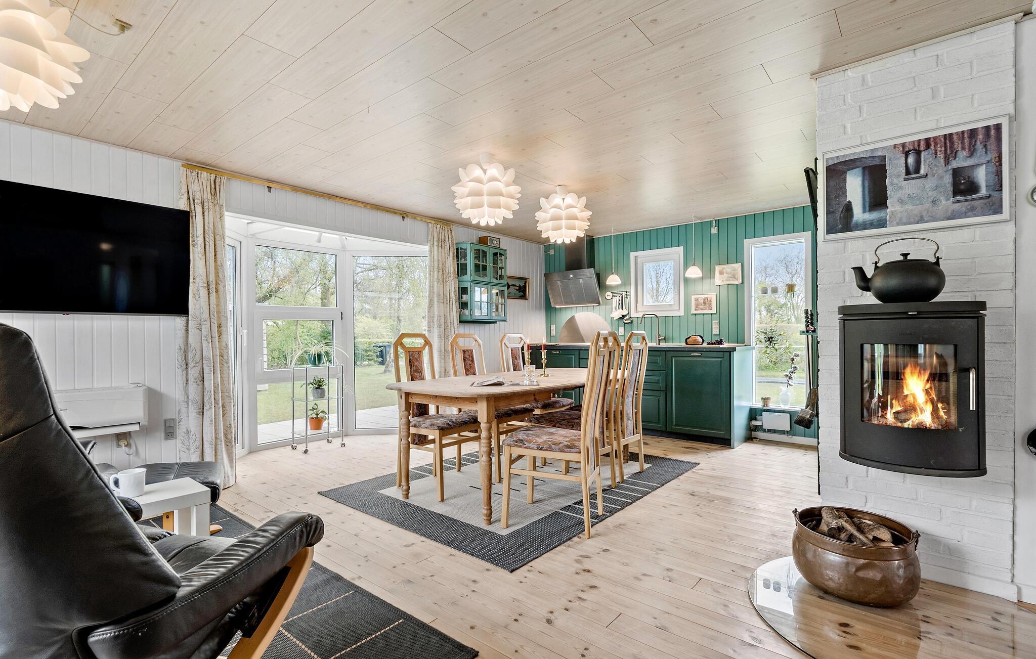 Glæd jer til en hyggelig ferie i Vestjylland, hvor I kan flytte ind i dette skønne sommerhus. Her får I nogle rolige, autentiske rammer omkring jeres rolige stunder efter nogle lange dage på farten. Særligt spisekøkkenet har en fantastisk atmosfære med det karakteristiske grønne køkken, trævæggene og den vægmonterede brændeovn til de kølige dage. Udendørs kan I se frem til en grøn have, hvor der står en kuglegrill til sommeraftenerne samt udendørsspil til børn og voksne.