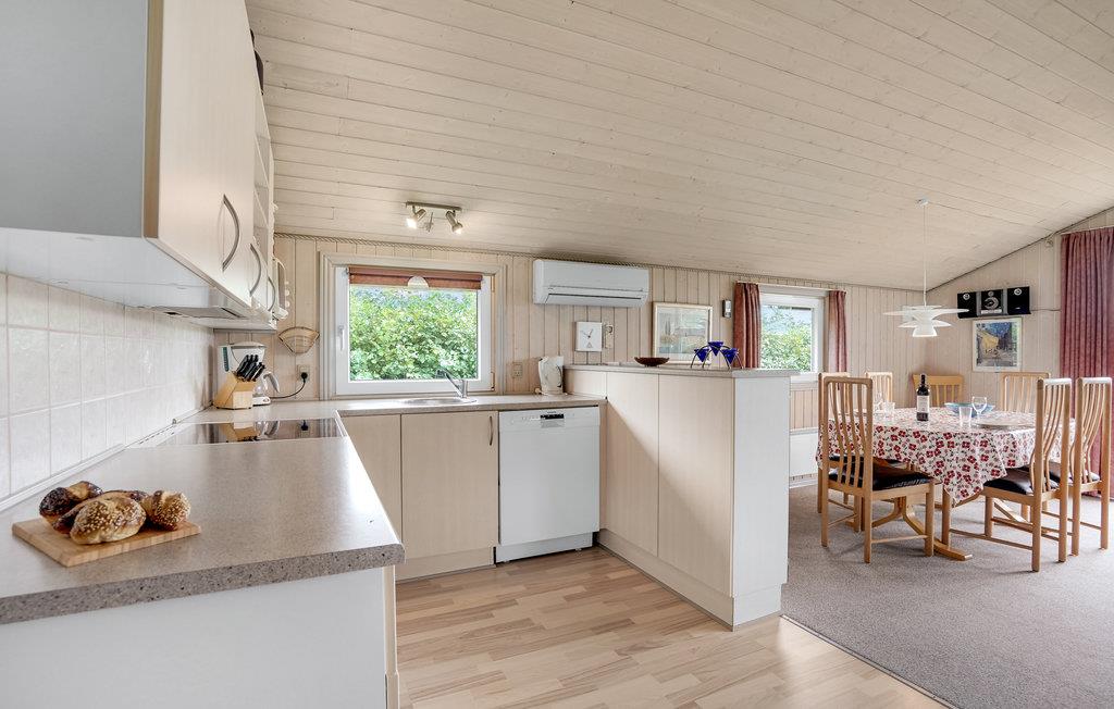 Tilbring en dejlig ferie i dette indbydende sommerhus, der er komfortabelt indrettet og skaber ideelle rammer for et ophold, som I vil huske med glæde i lang tid. Der er behagelig gulvvarme i badeværelset. Saunaen og spabadet inviterer jer til at slappe herligt af efter en aktiv dag. Om aftenen kan I hygge jer ved brændeovnen og lytte til flammernes knitren.