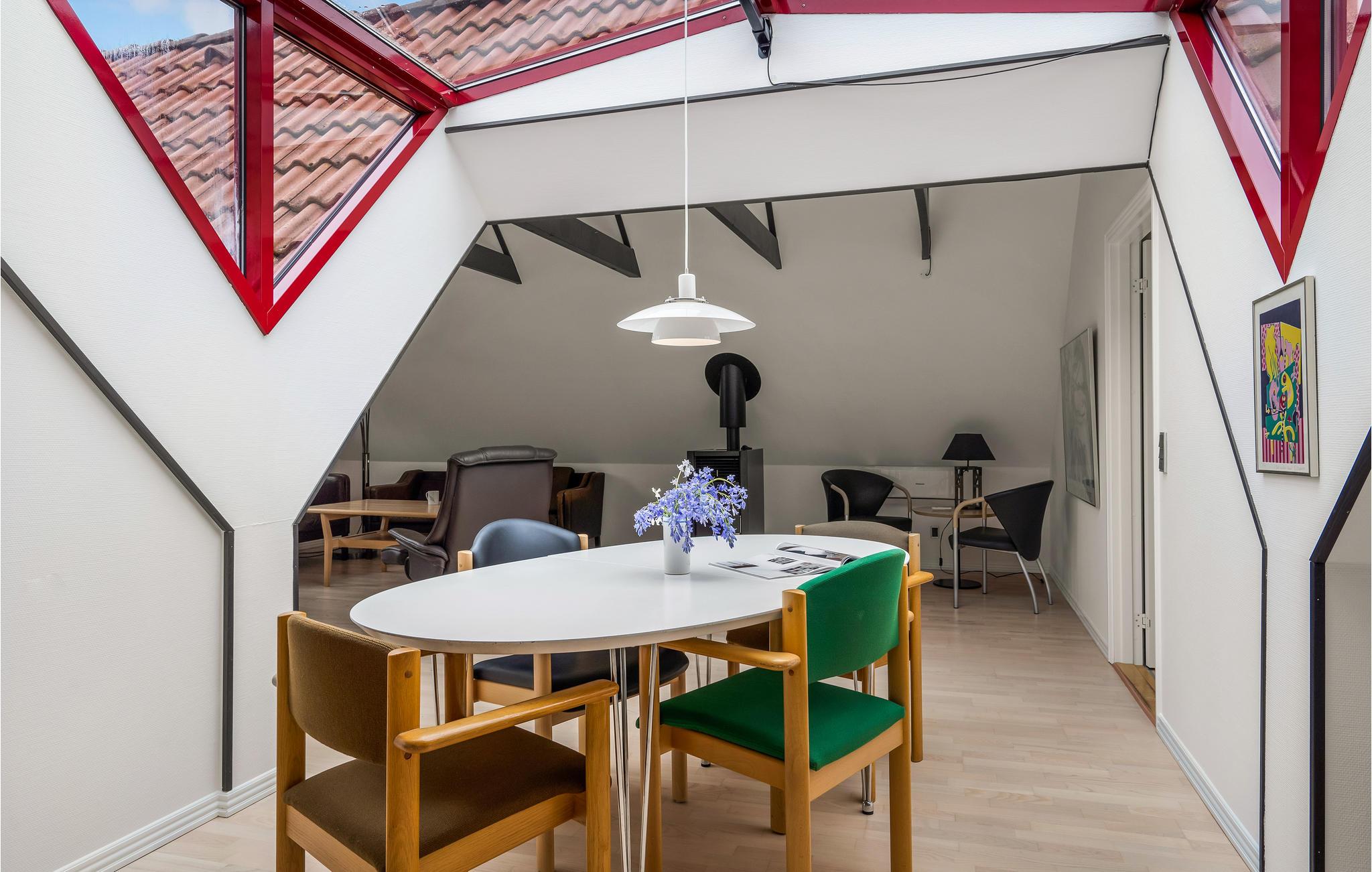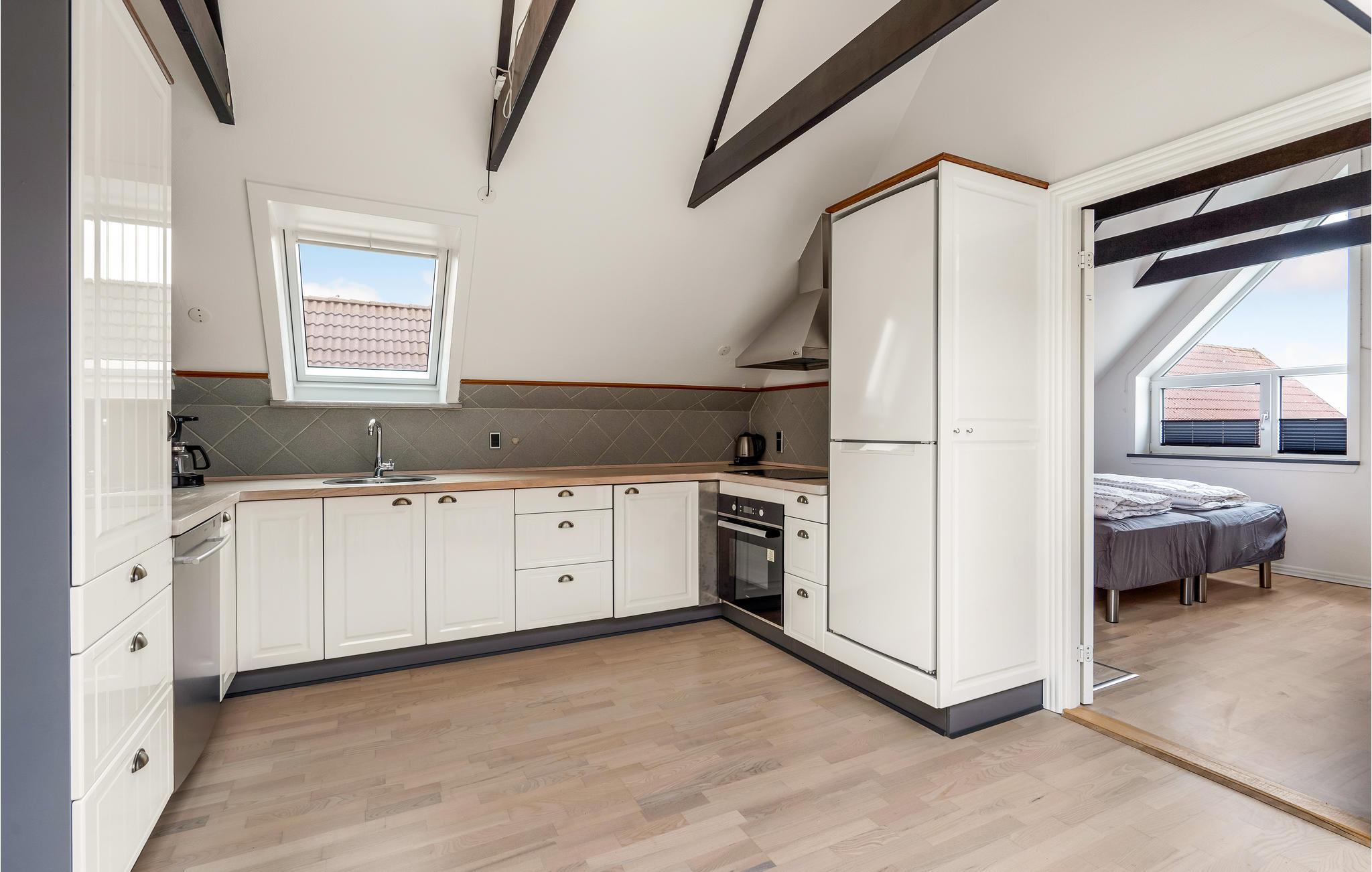 Med sine lyse rum, markante loftsbjælker og hyggelige møbler indbyder denne smukke lejlighed til afslapning. Her har I bade- og fiskemuligheder lige uden for døren. Slap af på sofaen og nyd varmen fra den hyggelige brændeovn. Træd ud på den åbne terrasse tidligt om morgenen og nyd de første solstråler. Senere kan I tilberede bøfferne på grillen. Hyg jer i lejligheden efter en dag fuld af oplevelser og nyd tiden sammen.