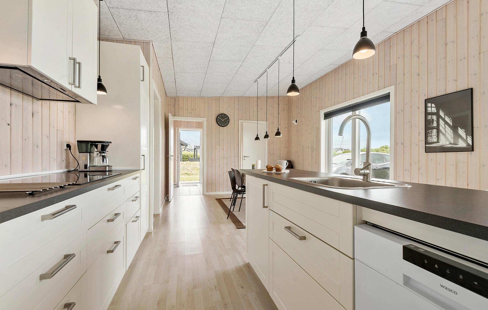 Velkommen til dette indbydende hus, der byder på nogle smukke omgivelser. Her kan hele familien hygge sig. Nyd den vidunderlige udsigt gennem gulv-til-loft vinduerne. Indretningens moderne charme gør, at I meget hurtigt vil føle jer hjemme i jeres hus. Brug ferietiden til at samles til fælles måltider, spille sjove bræt- og kortspil eller slappe af i sofagruppen, hvor I kan planlægge morgendagens oplevelser og aktiviteter.