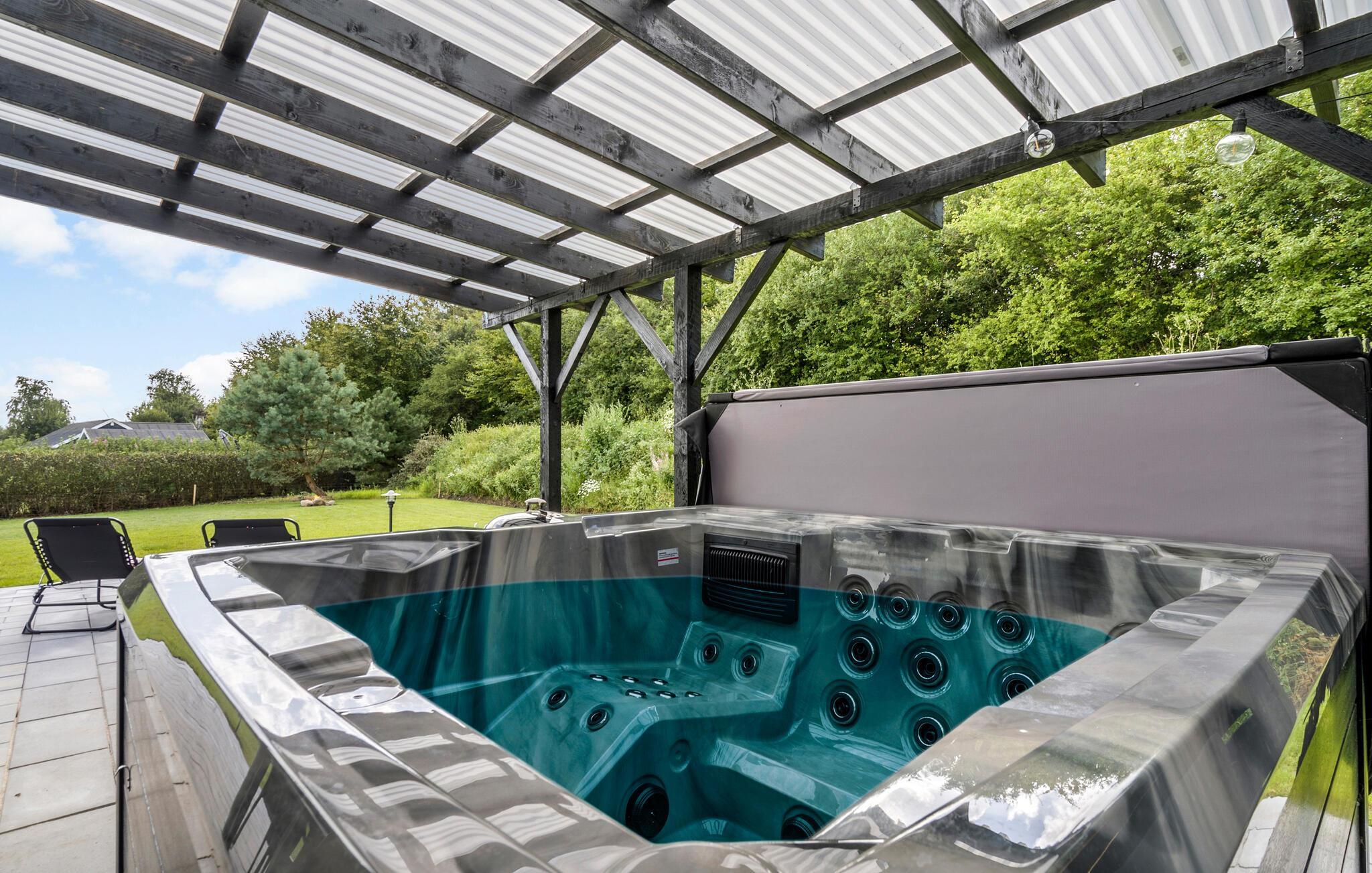 På de varme dage kan I nyde solen i fulde drag på den store terrasse. Begynd dagen med en friskbrygget kop kaffe, hold øje med børnene, der leger i haven og rund en smuk sommeraften af under stjernerne i det udendørs spabad.