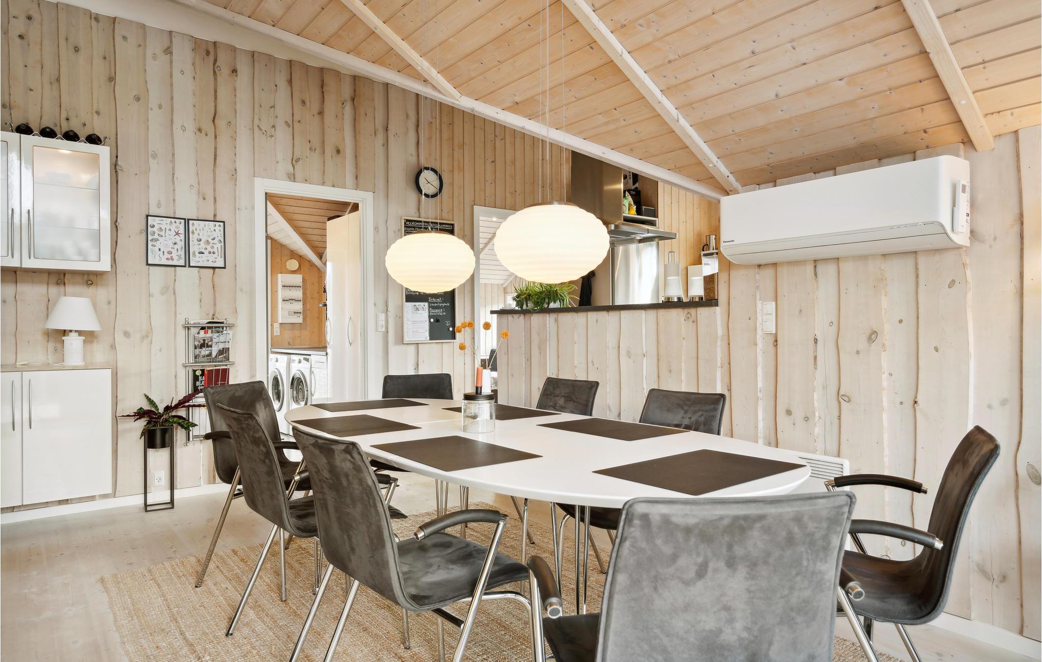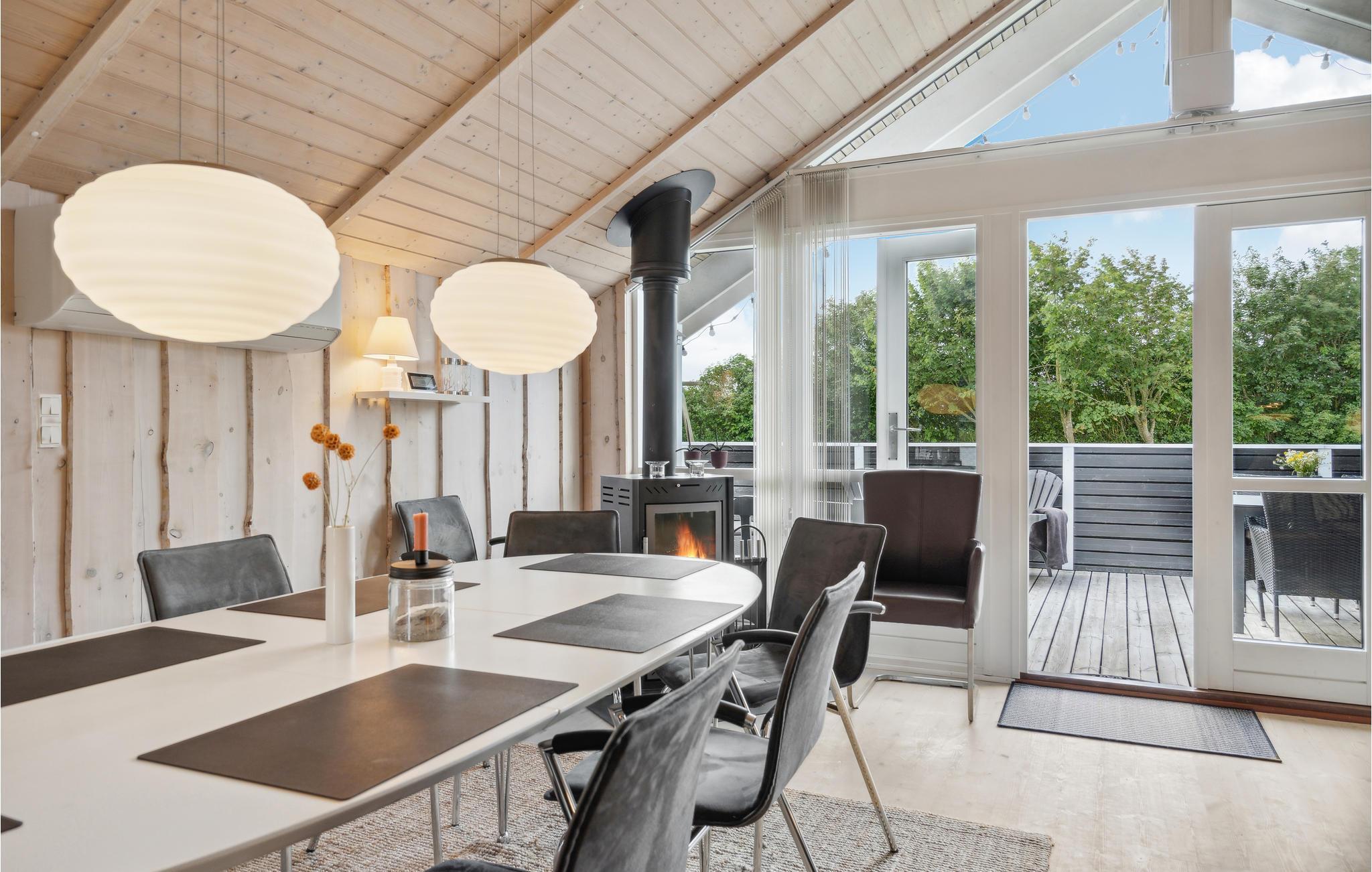 Der er god plads og herlige muligheder for at slappe af og nyde sin ferie i dette indbydende sommerhus, som ligger tæt på Ringkøbing Fjord. Her kan I fylde dagene med hyggelige aktiviteter inde og ude, samles om spisebordet til lune aftenretter og spille brætspil, mens regnen trommer mod ruden. På en kølig dag bliver huset ekstra stemningsfuldt med ild i brændeovnen, og skulle I trænge til lidt forkælelse oven på en frisk gåtur, kan I sætte jer til rette i saunaen eller spabadet.