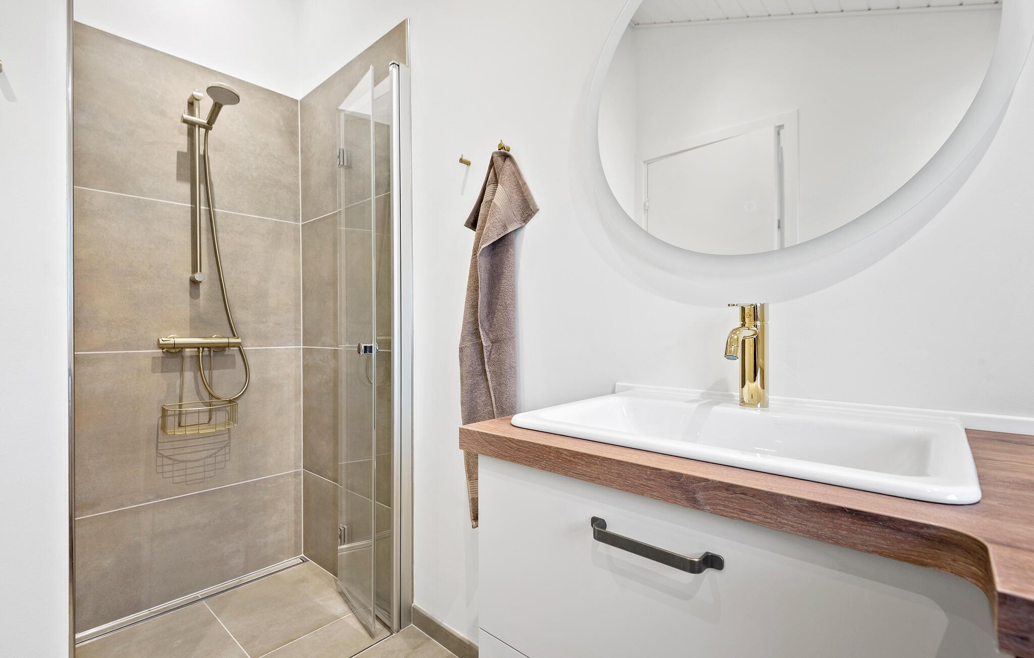 Velkommen til dette velindrettede feriehus, hvor hele familien kan få en skøn pause fra hverdagen. Indenfor finder I gode faciliteter, der indbyder til at lave mad sammen i køkkenet eller tilbringe hyggelige aftener med brætspil eller en god serie i sofaen. Når solen er fremme, kan I vælge mellem to terrasser. Om morgenen kan I sætte jer til rette ved husets indgang, mens I kan nyde eftermiddags- og aftensolen på den overdækkede terrasse i haven, hvor I også kan dække op til den store grillmiddag. Jeres børn kommer ikke til at kede sig udendørs, for der er både gynger, rutsjebane og en sandkasse.