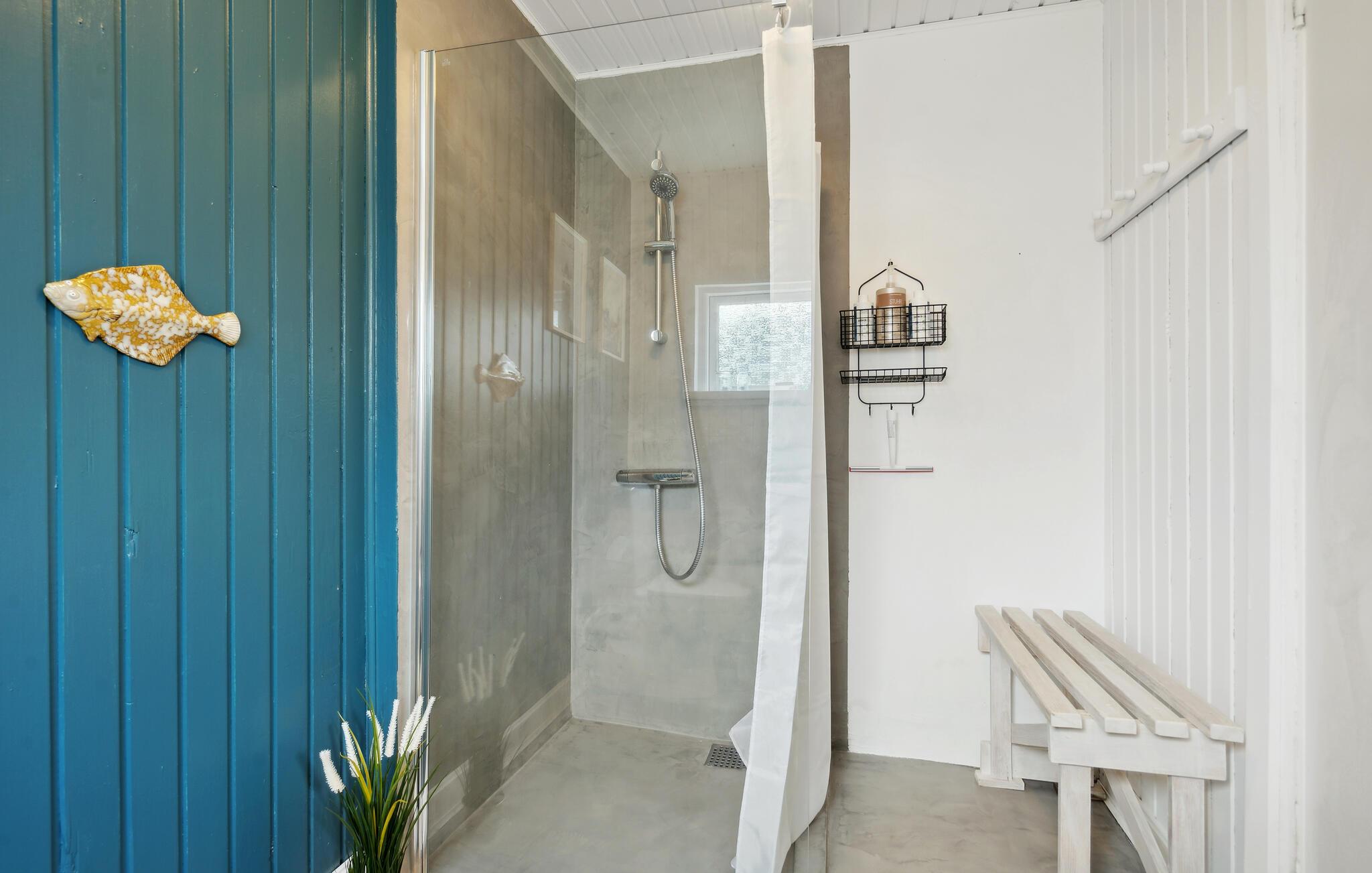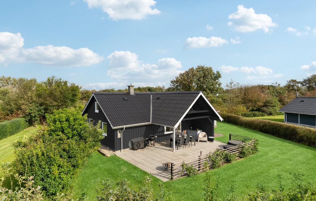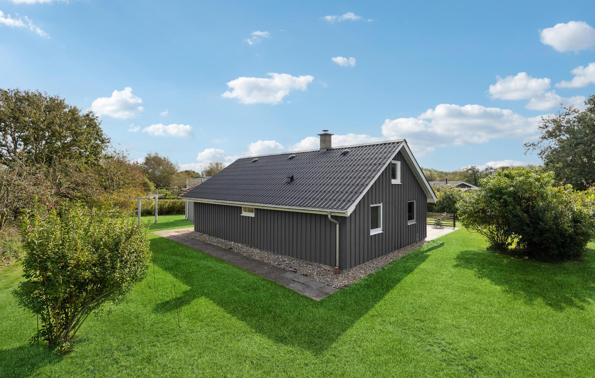 Der er lagt op til nogle herlige feriedage i det vestjyske, hvor I kan få jeres base i dette skønne, moderne sommerhus. Her kan I se frem til et væld af fine indretningsdetaljer, smarte farveaccenter og lyse, behagelige rum. Efter en lang dag på farten er det dejligt at vende hjem til huset og kigge på flammerne i brændeovnen eller give sig god tid til madlavningen i det åbne køkken. Der er højt til loftet og velindrettede hemse foroven. De lune sommeraftener tilbringes på terrassen, hvor I kan dække op til en hyggelig middag og tage brætspillene med udenfor. I haven er der gode rammer til at løbe og lege eller gemme sig i buskene. Når I trænger til et friskt dyp, er der en sti ned til vandet. Hvis I drømmer om en ferie med fred, ro og smuk natur, så er dette hus et godt udgangspunkt.