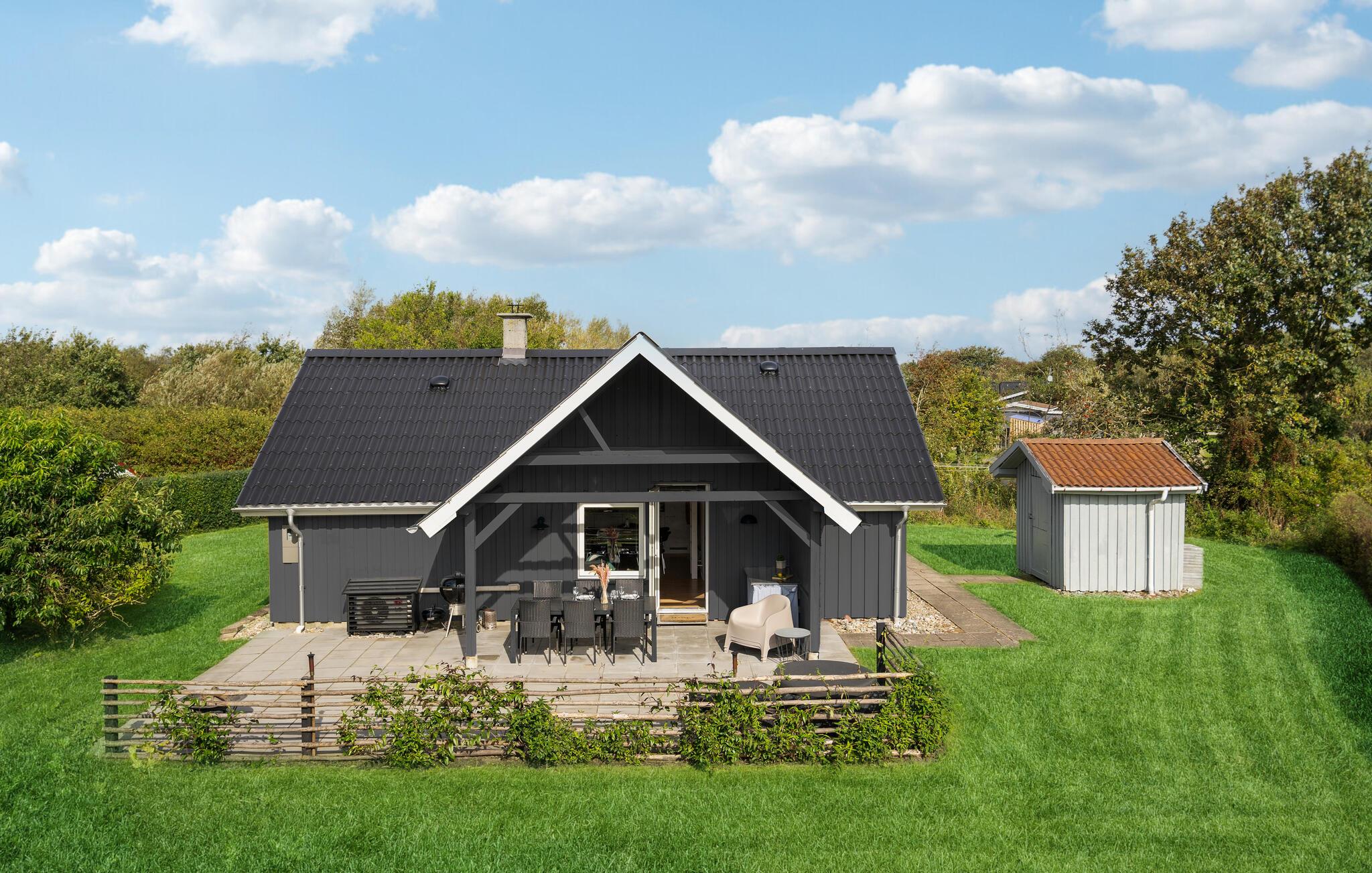 Charmerende sommerhus i roligt område nær Ringkøbing Fjord med terrasse og brændeovn.
