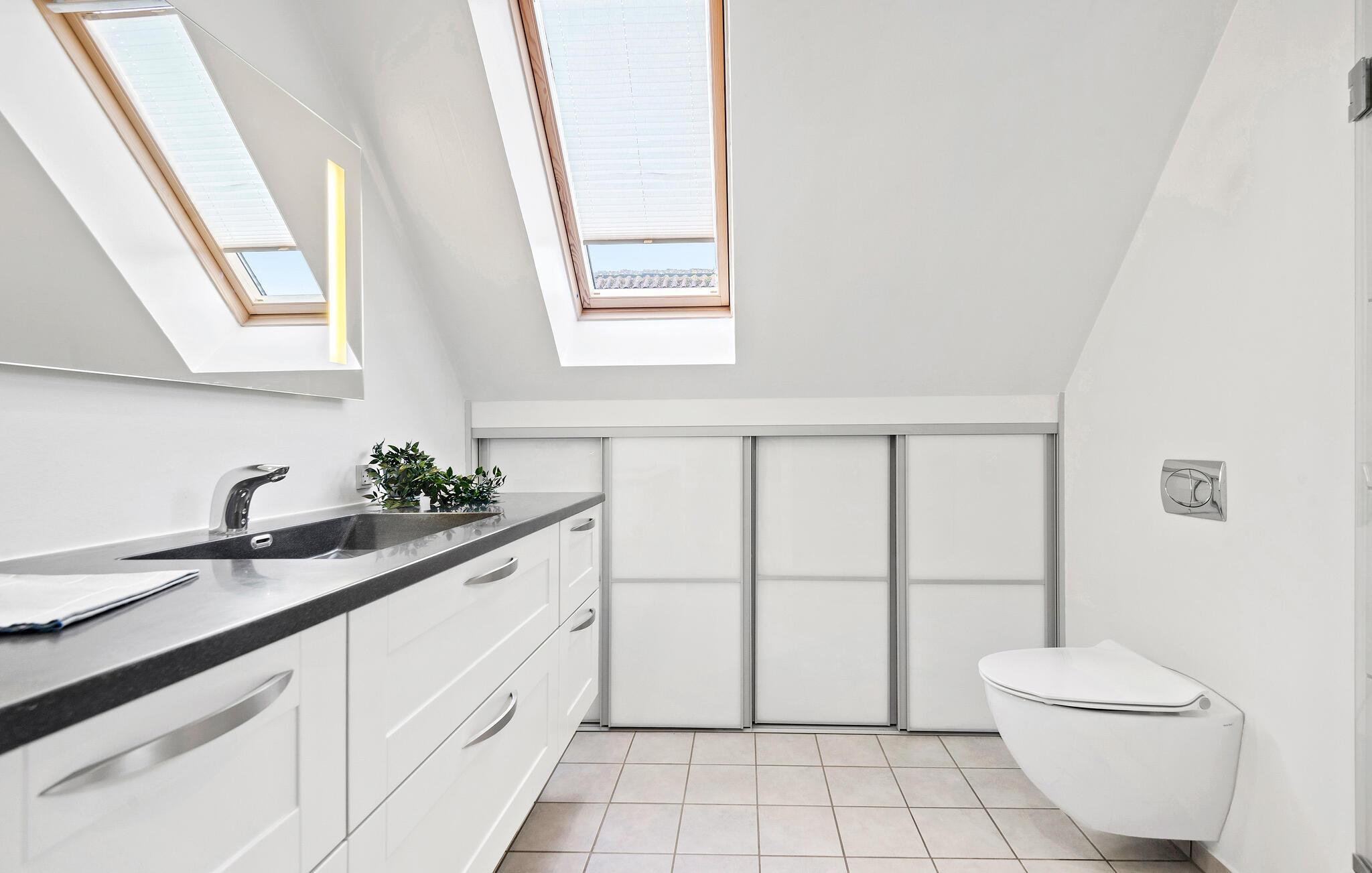 Badeværelse (nr. 1) - WC. Varmt og koldt vand. Bruser