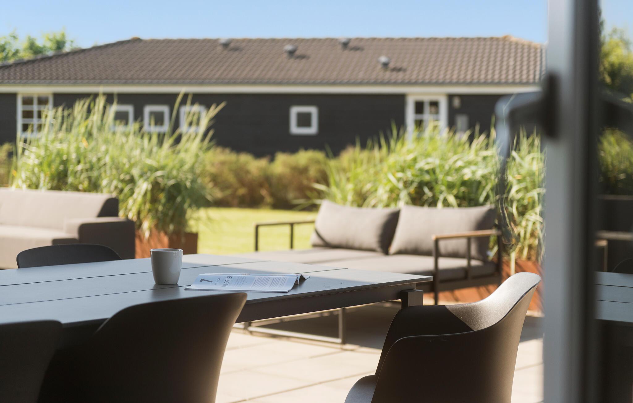 Når solen skinner, kan I nyde den fra morgen til aften på den rummelige terrasse eller i haven, hvor børnene får god plads at boltre sig på. Efter en herlig dag ved stranden eller på udflugt er der få ting, der slår en tur i vildmarksbadet under stjernerne med en god drink.