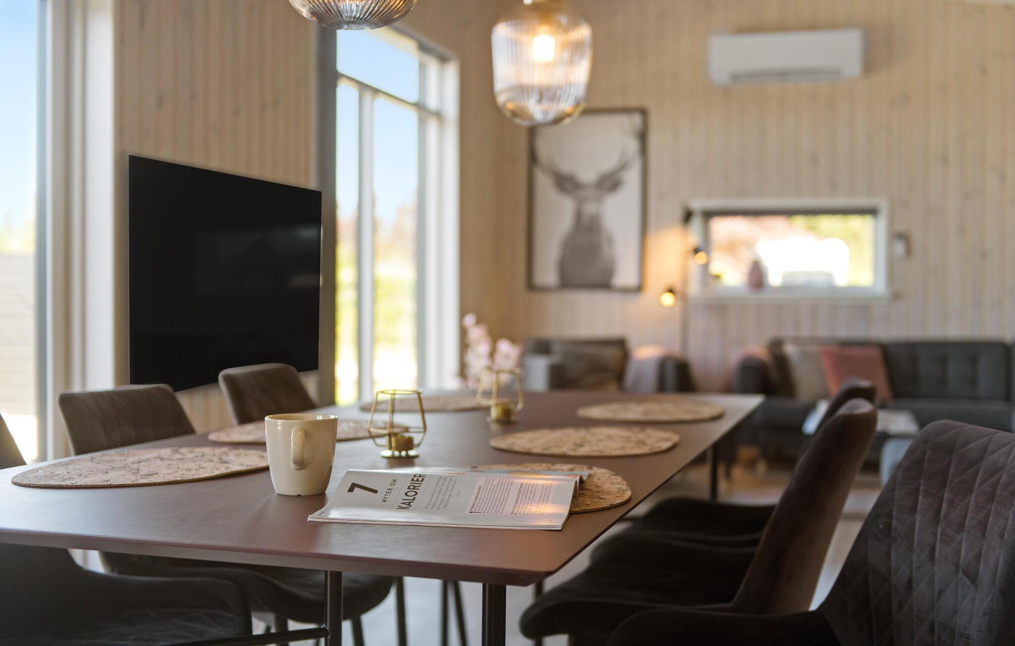 Velkommen til Bork Havn og dette veludstyrede hus, der danner rammen om årets bedste uger med familien. Huset er flot indrettet med moderne materialer, et komfortabelt møblement og store vinduespartier, der lader dagslyset sive ind og giver en dejlig udsigt til terrassen og haven. Hvis vejret bider lidt, kan I tænde op i biopejsen og se frem til indendørs hygge med god tid til madlavningen i det veludstyrede køkken, et lækkert måltid mad ved spisebordet og en sjov aften i den store sofa med snacks, brætspil og en god film på tv'et.