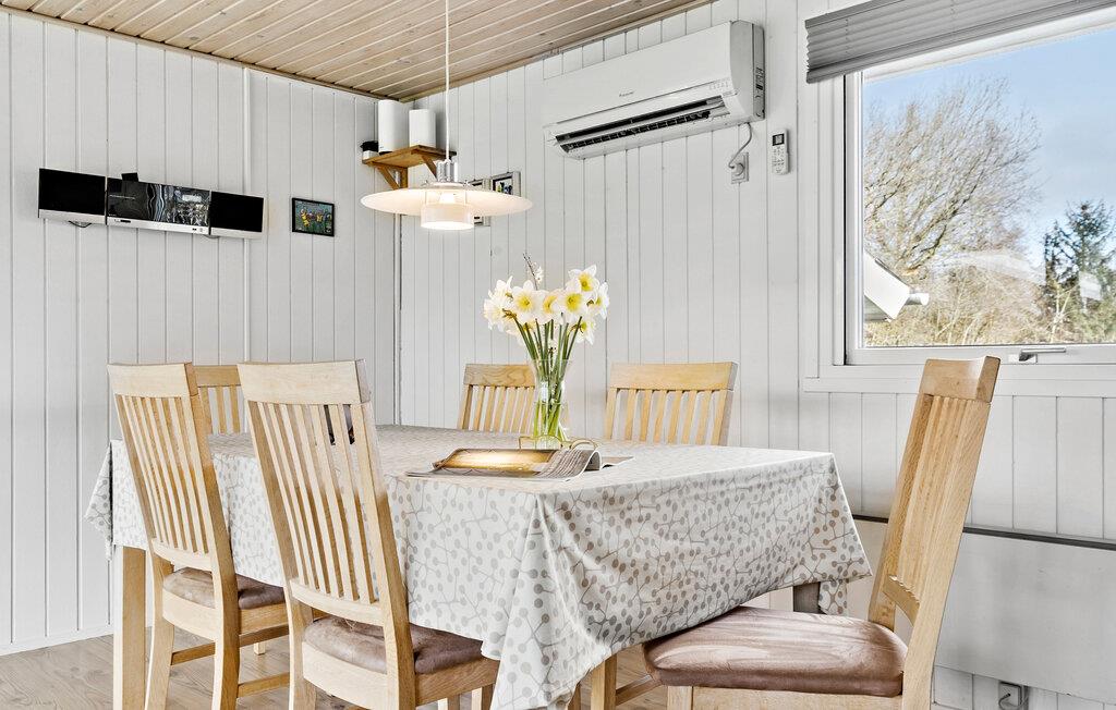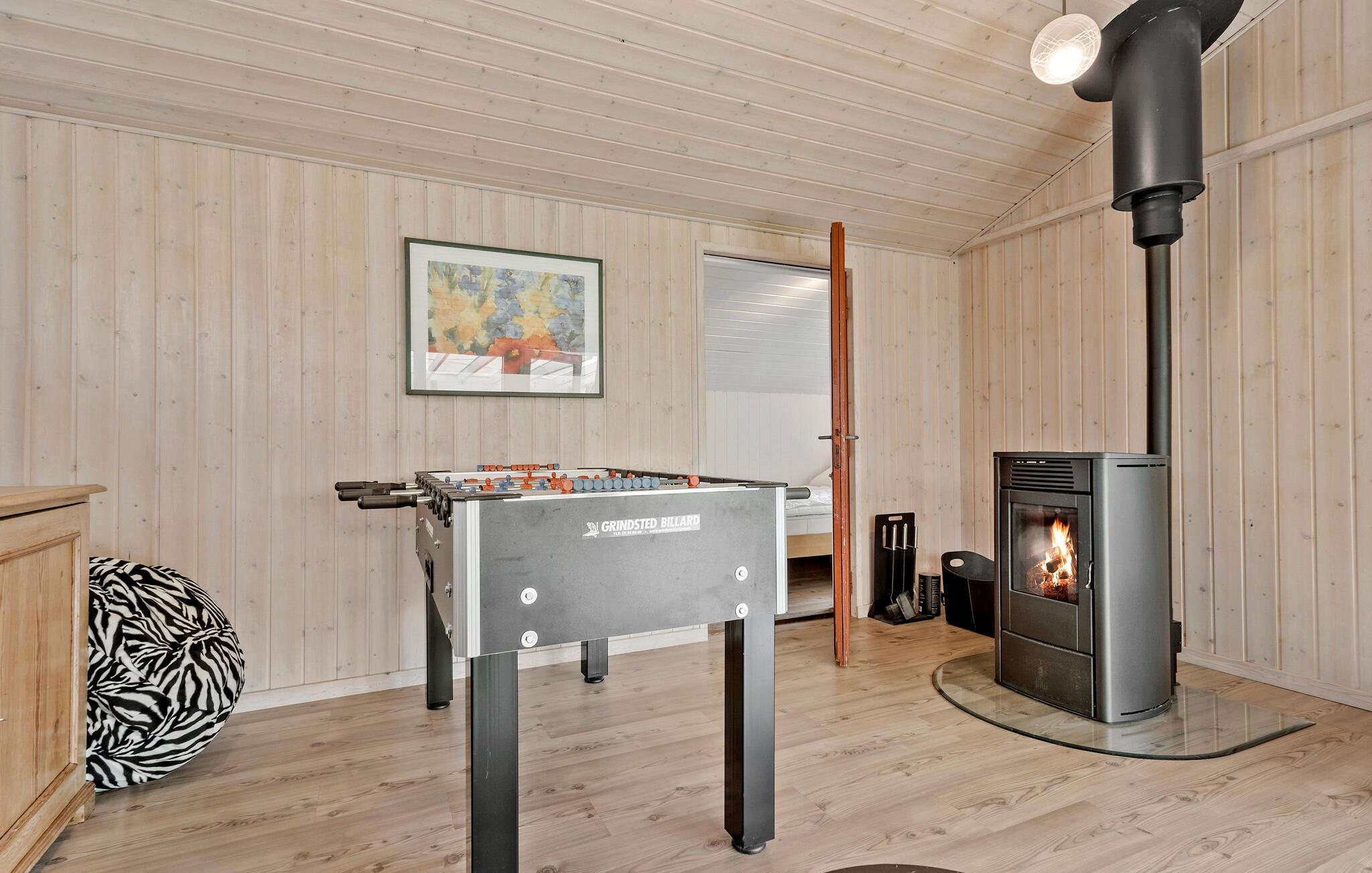 Lige i bunden af Ringkøbing Fjord finder I dette indbydende træhus, der danner rammen om en fantastisk familieferie i det vestjyske. Huset er pænt og hyggeligt indrettet med masser af træ, et åbent boligkoncept og et lækkert lysindfald, der skaber en rar atmosfære at slappe af i med god mad eller en bog i sofaen. Efter aftensmaden kan I trække ind i aktivitetsrummet og udfordre hinanden til et slag dart eller bordfodbold, inden I sætter en god fim på tv'et i stuen.