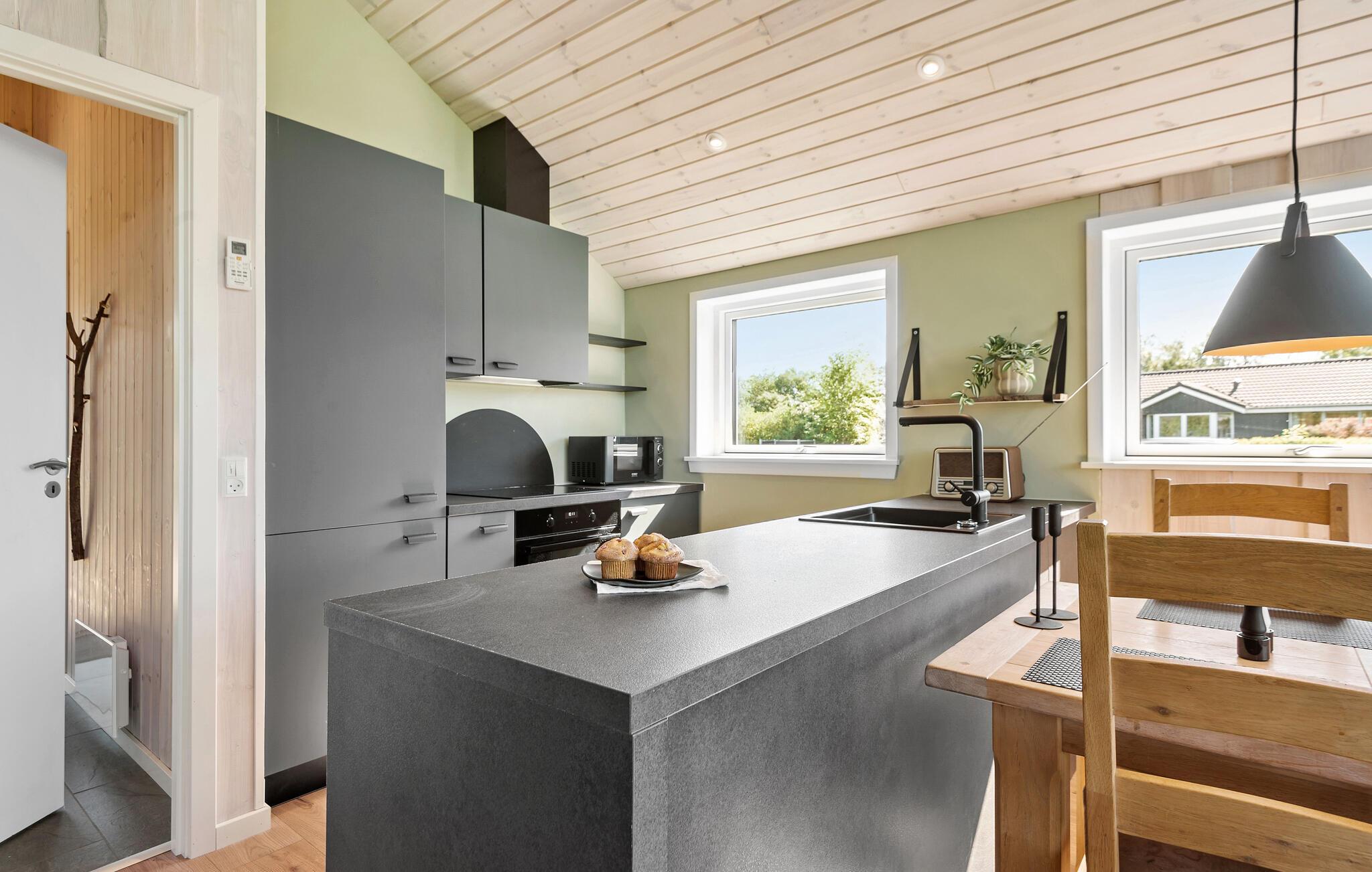 Tag familien under armen og rejs til Vestjylland, hvor I i bunden af Ringkøbing Fjord får base i dette lækre feriehus. Huset er virkelig flot indrettet med gode rumløsninger, hyggelige hjørner og kroge og store vinduespartier, der giver et lækkert dagslys til det åbne opholdsrum. De velholdte og let rustikke træpaneler suppleres så ganske fremragende af de moderne faciliteter i eksempelvis køkkenet, hvor familiens kokke kan kræse om livretterne, mens andre slapper af i sofaen eller dækker op ved spisebordet. Og måske I skal runde aftenen af med snacks og en god film på tv'et?