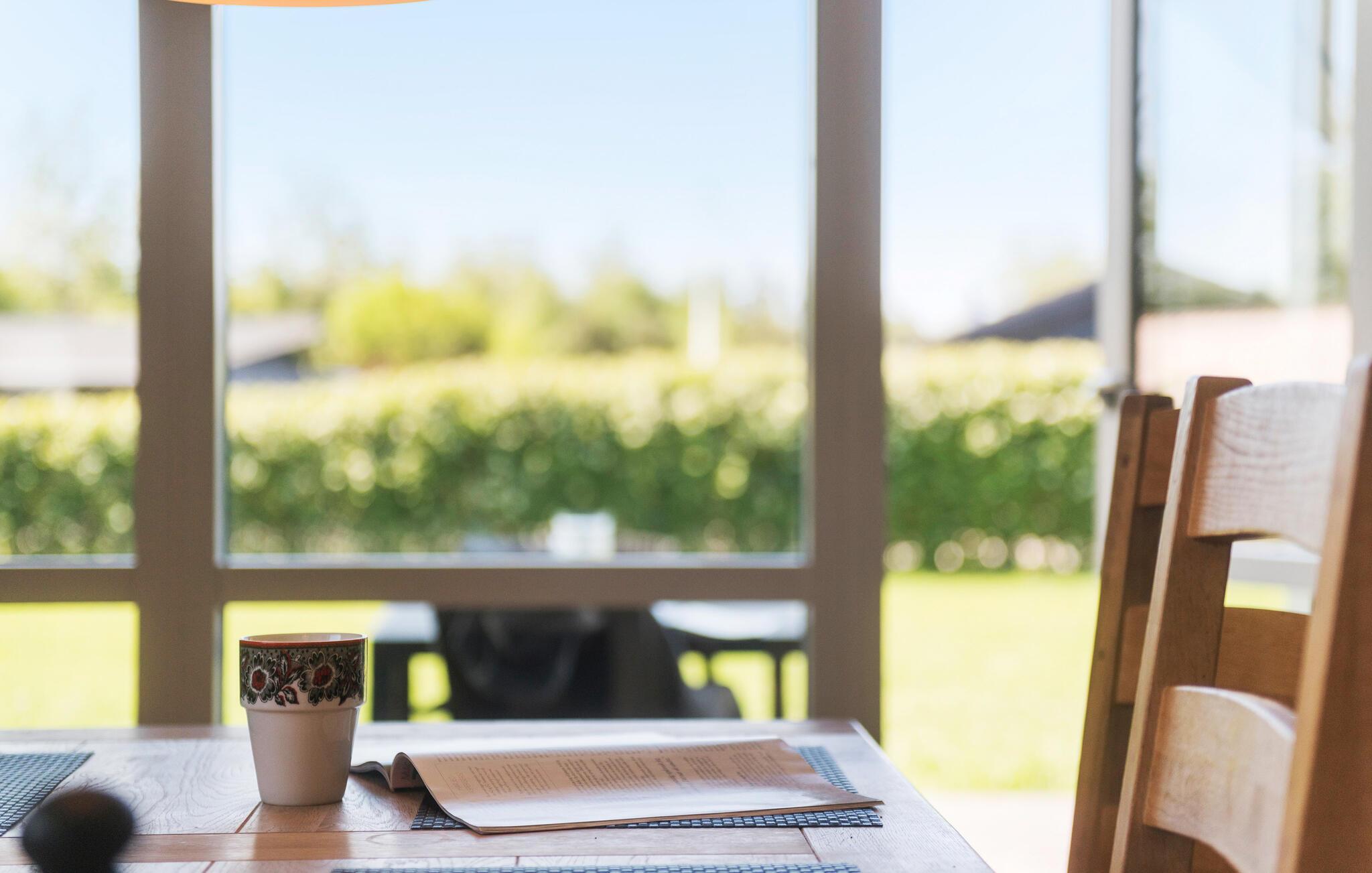 Når solen skinner, kan I nyde den i fulde drag i haven og på terrassen. Begynd dagen med en god kop kaffe, nyd solen, roen og den friske luft og lad børnene lege i haven, inden I tager på tur.