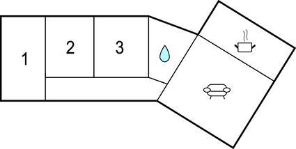 Badeværelse (nr. 1) - WC. Varmt og koldt vand. Bruser