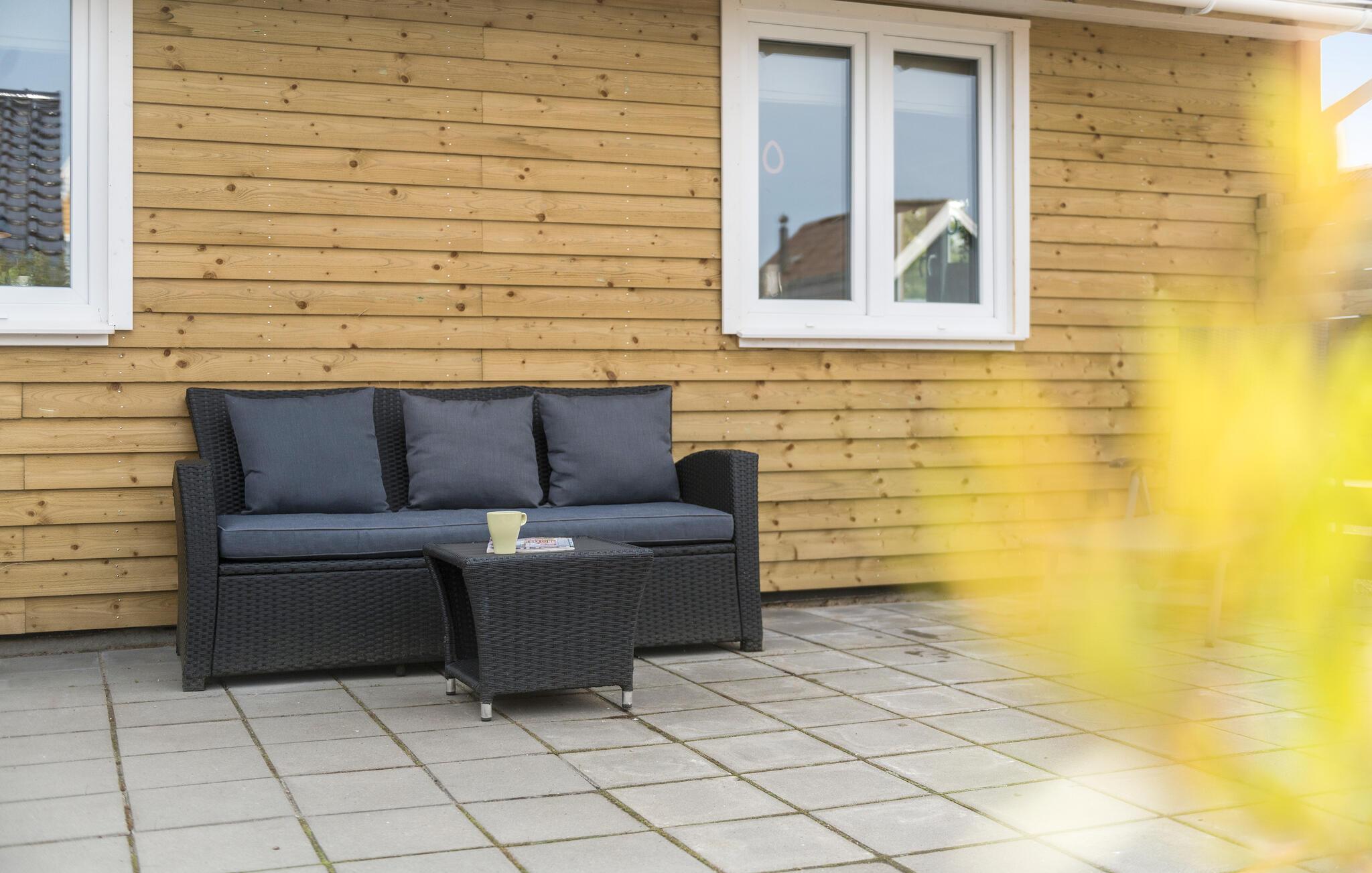 Nyd morgenmaden på den åbne terrasse på solrige dage, glæd jer til afslappende timer udendørs, og brug det overdækkede område til stemningsfulde grillmiddager med et glas vin.
